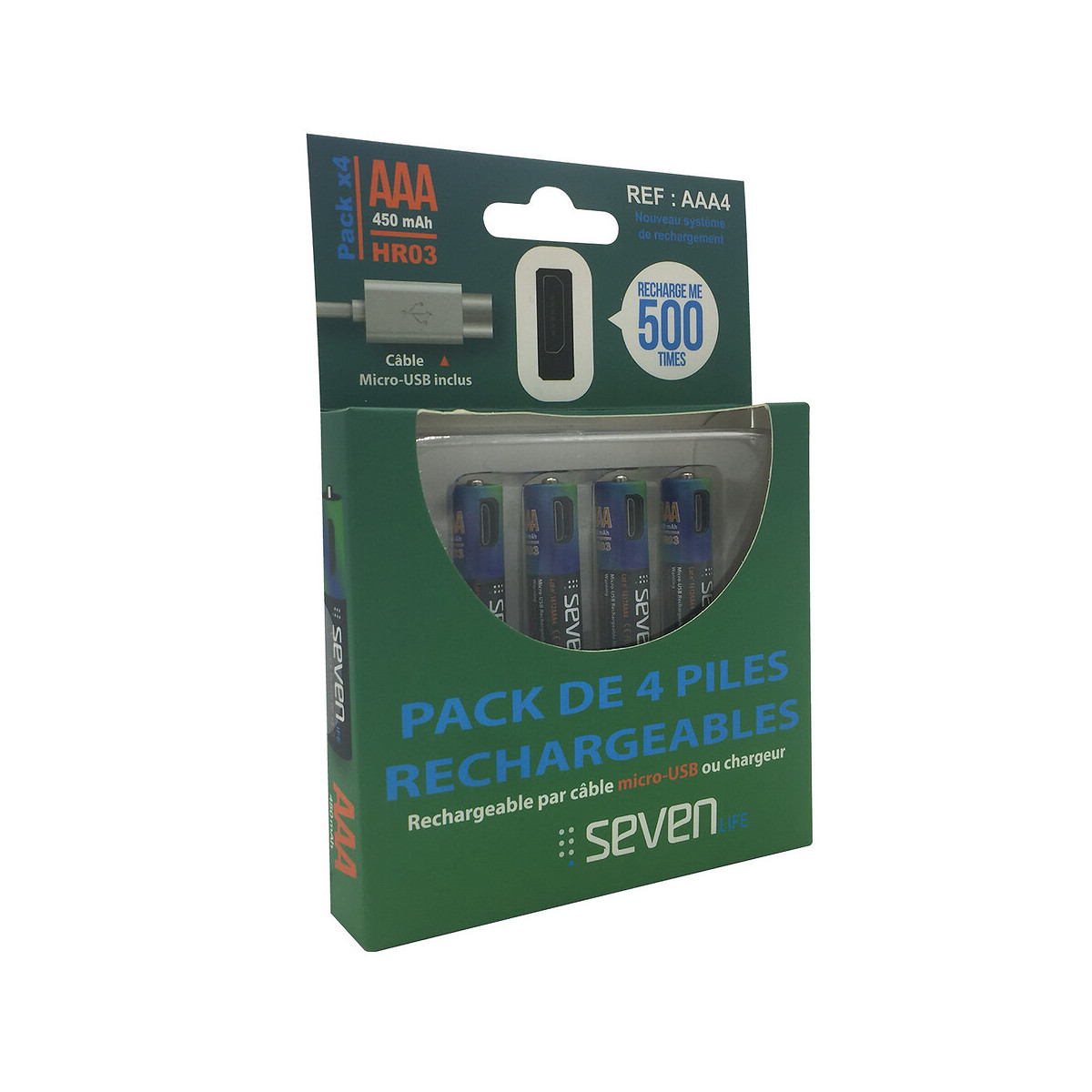 Pack De 4 Piles Rechargeables Aaa (hr03) Seven Life Par Micro Usb