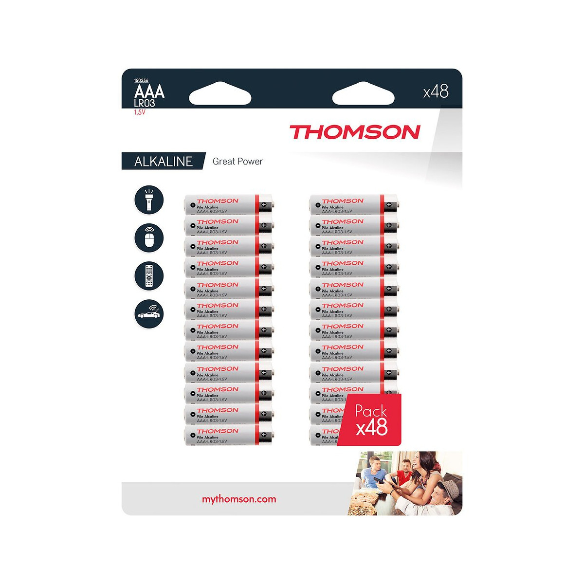 Pack de 48 piles alcalines LR03 AAA 1,5V. Idéales pour les lampes torches, souris informatique, télécommandes, jouets? etc. Certifié CE. Marque Thomson