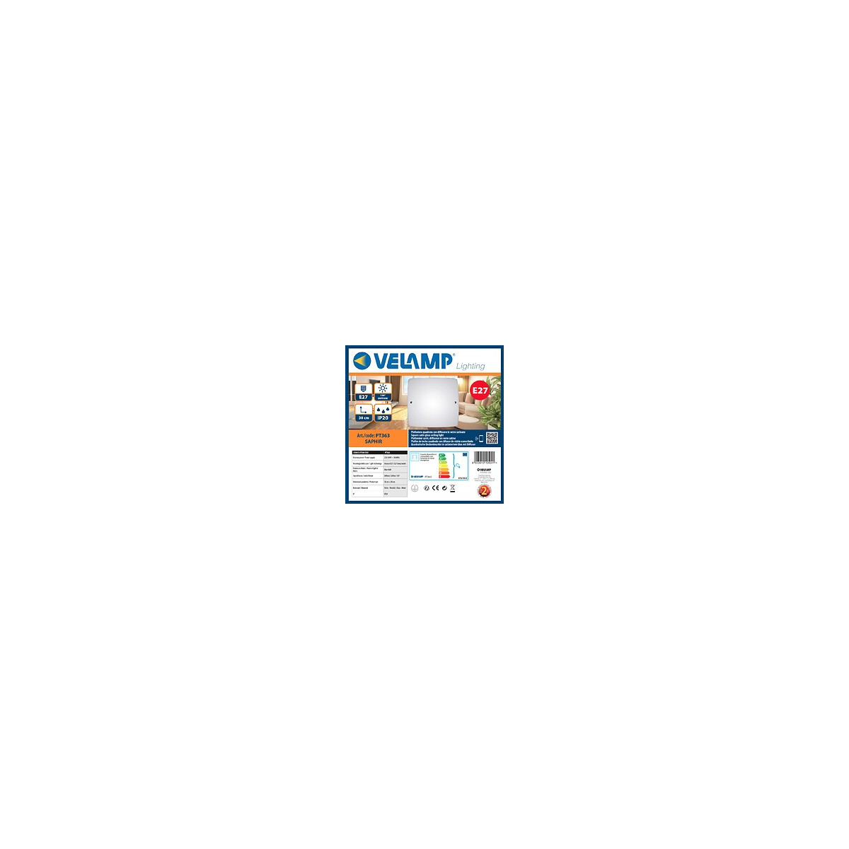 SAPHIR: Plafonnier carré en verre satiné blanc. Un design classique et intemporel qui convient à toutes les maisons. Diffuseur en verre. Dimensions : 30 x 30 cm. Fonctionne avec une ampoule E27 non incluse. L'ampoule peut être LED, à incandescence ou à économie d'énergie. Ne doit pas dépasser 40 W de consommation. Base et crochets métalliques. Le produit est fini avec soin. Velamp est une marque italienne : nos produits sont soignés, selon la norme et la qualité.