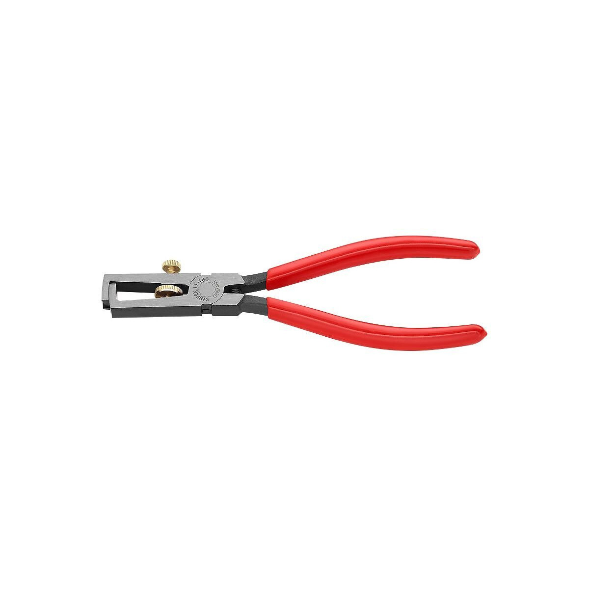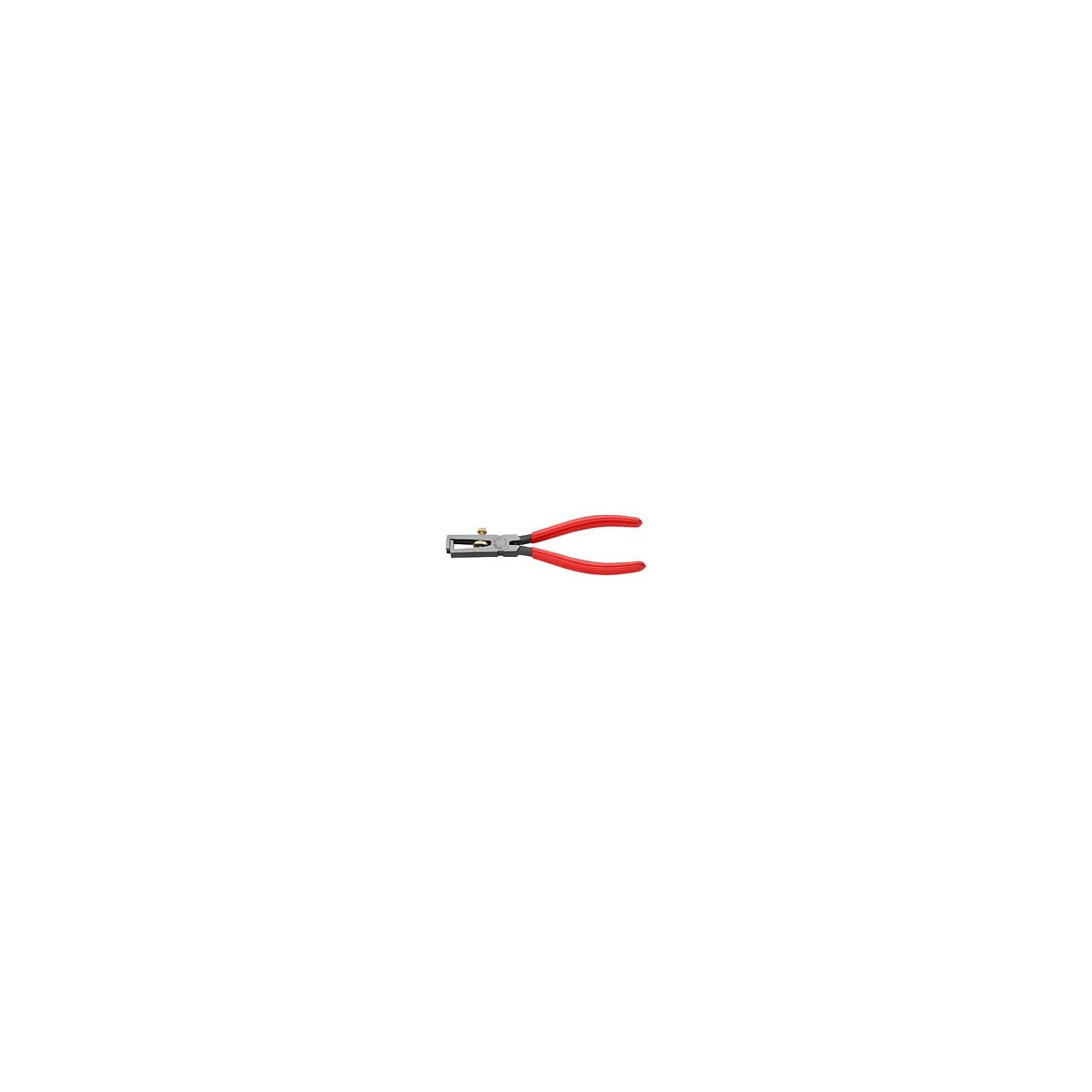 Pince à dénuder Pour conducteurs unifilaires, multifilaires et fils fins, isolation plastique ou caoutchouc diamètre maximum 5,0 mm et section 10 mm². Réglage simple du diamètre du câble ou du fil grâce à l'écrou moleté et au contre-écrou. Acier à outils spécial, forgé, trempé à l'huile. Coupe : 5,0 mm max. | Longueur : 160 mm | Poids : 131 g | Réf : 11. 01. 160