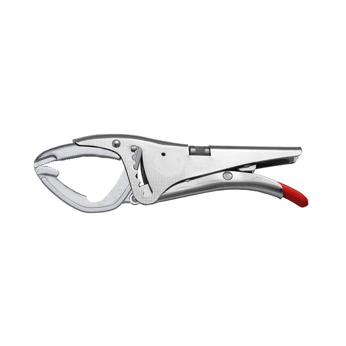 Pince étau à bec court avec crémaillère 4 positions. Serrage 55mm. Equipée d'une crémaillère pour serrer toutes les épaisseurs jusqu'à la capacité maximale en conservant les mors toujours parallèles. Largeur des mors 16mm en acier forgé, rainuré, trempé , avec denture 58/60 HCR. Serrage précis et puissant de 300 à 600 daN. Revêtement technique haute protection contre la corrosion. Conception ergonomique pour un verrouillage et déverouillage facile, d'une seule et même main. Réglage de la force de serrage au pouce par molette.