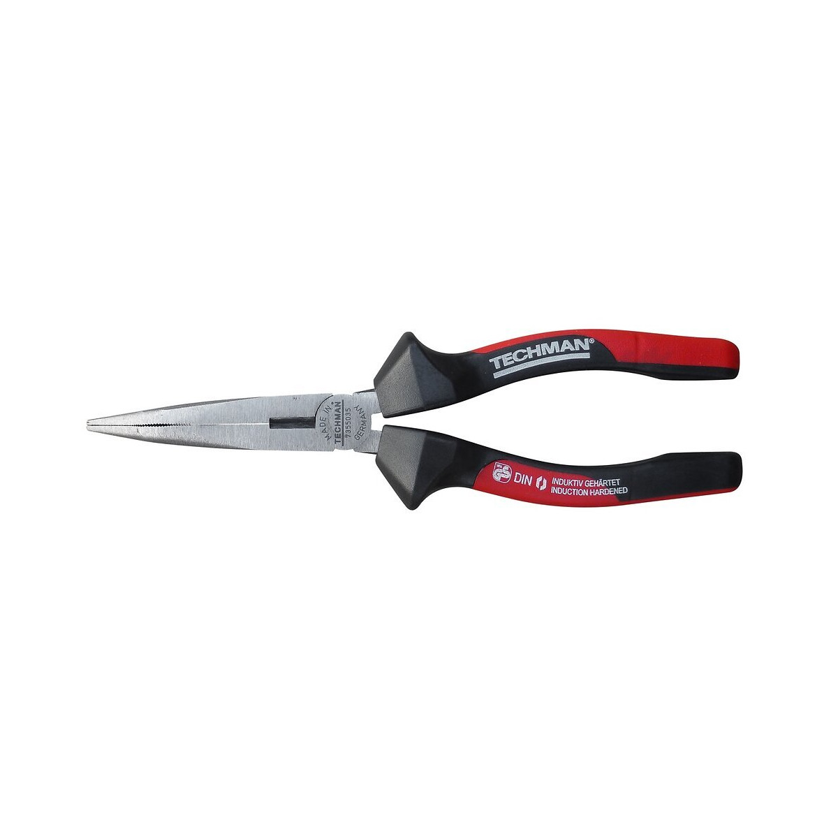 Pince téléphone à bec coudé. Coupe Maxi: 1,8mm. En acier chrome vanadium forgé de haute qualité. Poignées ergonomiques avec grip confort antidérapant. Denture trempée haute dureté. Ergot anti-Pincements.Tranchant durcis par induction. Bec long et effilé pour manipuler avec précision. Fabriquée en Allemagne