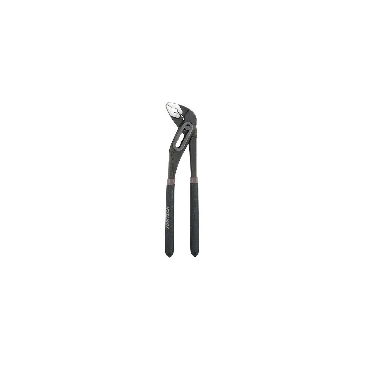 Pince Multiprise 250 mm en acier forgé chromé vanadium CrV 50, finition satinée, mâchoires polies. Conforme DIN 8976. Charnières entrepassées avec butée de sécurité. 7 positions de serrage : de 6 à 42 mm. Poignées antidérapantes SoftGrip