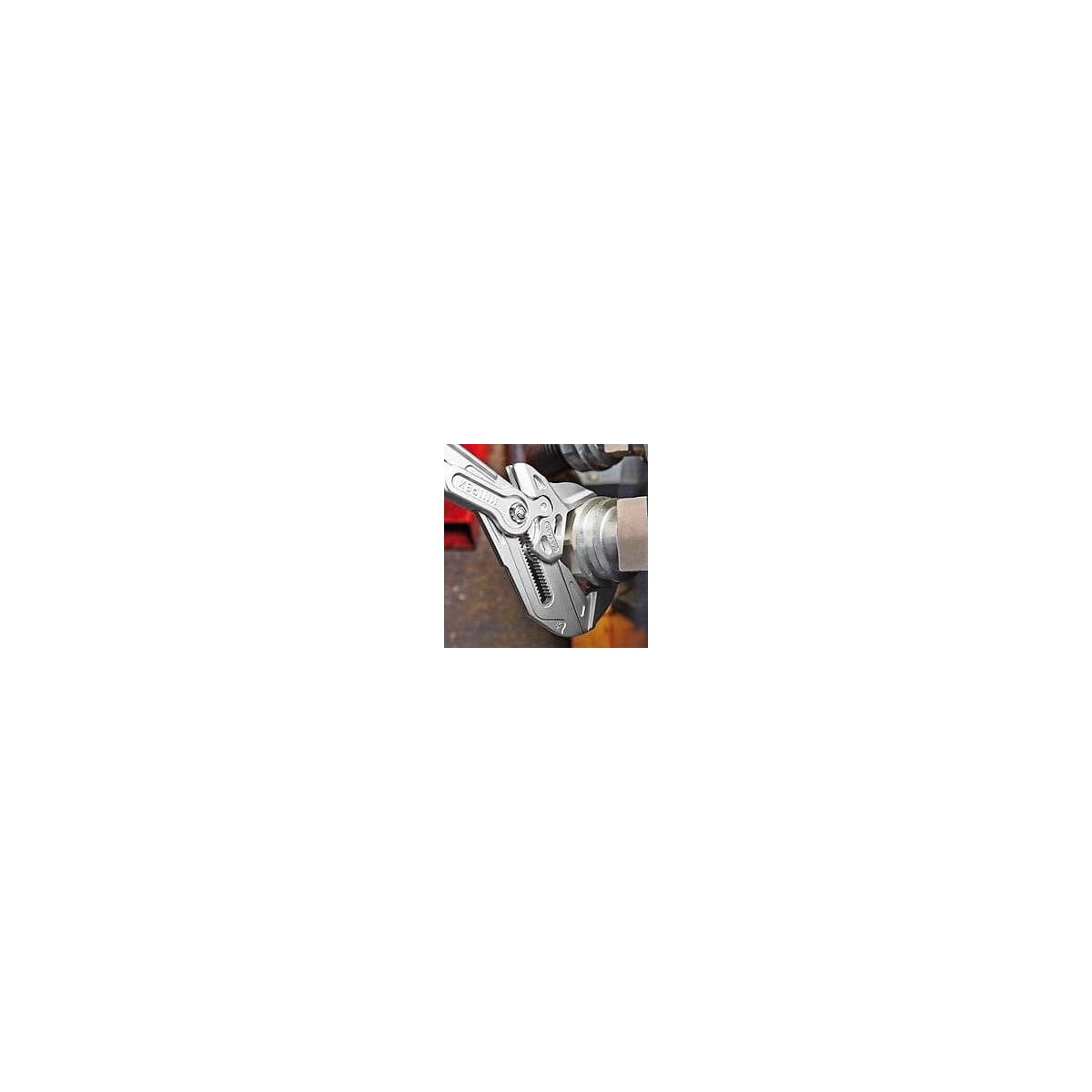 Pince clé multiprise. Mors lisses et parallèles, bouton de débrayage, nickelée, gainée anti-dérapant.