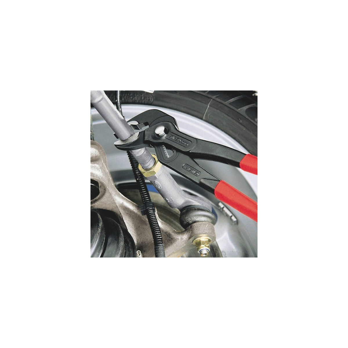 Pince Multiprise à Serrage Auto, Réglable Par Bouton Poussoir Poignée à Revêtement Plastique Antidérapante Acier Chrome Vanadium Trempé Dents Polies, Trempées Par Induction La Protection Anti-pincement Empêche Les Blessures Par écrasement Joint à Rainure Réglage Fin, Rapide Et Précis, D'une Main, Directement Sur La Pièce à Travailler Aucun Réglage Par Inadvertance Serrage Automatique Sur Tuyaux Et écrous Aucun Glissement Au Niveau De La Pièce à Travailler