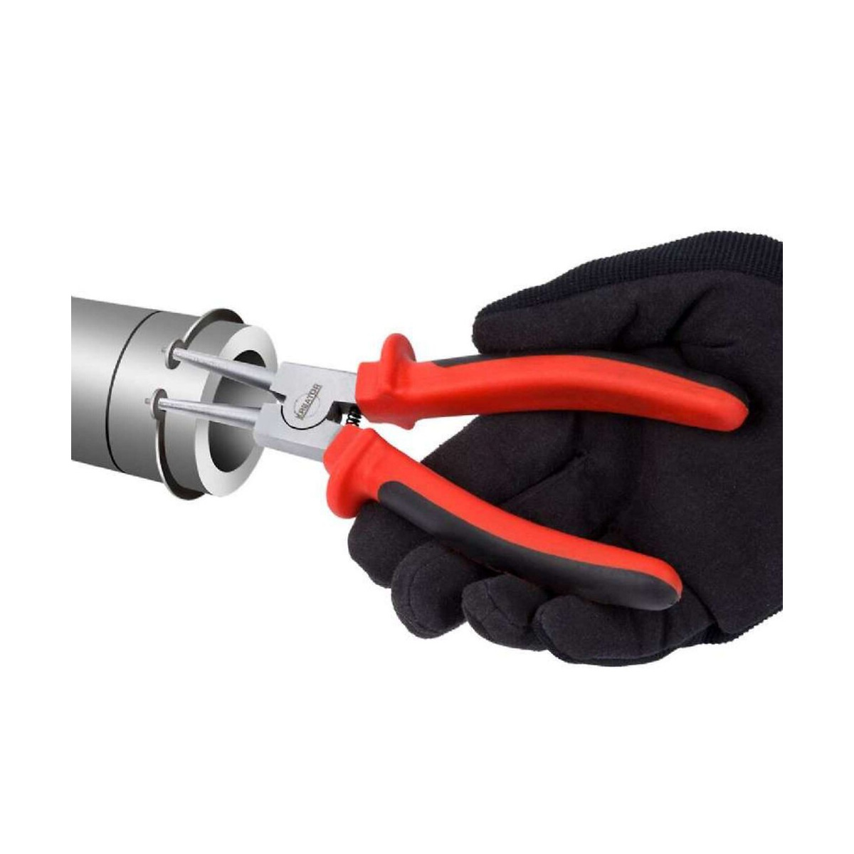 Description détaillée du produit produit: mini pince type tenaille marque: Kreator dimensions: 175 mm convient pour Ø 2,5 mm ou plus matière: chrome vanadium finition: satinée poignées ergonomiques TPR en caoutchouc souple coloris: rouge et noir polyvalente et légère