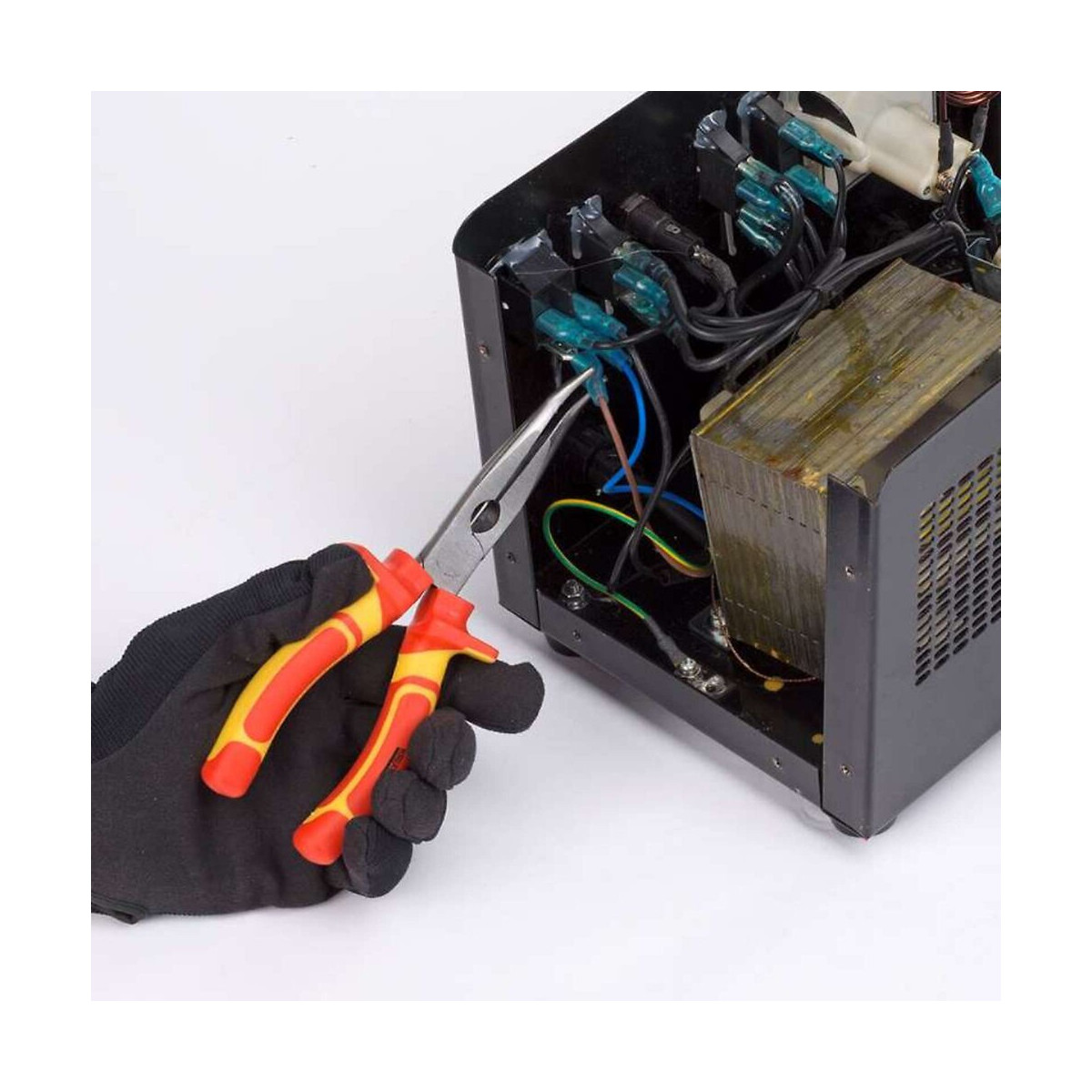 Description détaillée du produit Produit: Pince isolée à bec long coudé Longueur: 200mm Type de pince à bec: long coudé Type de cisaille à tôle: Coupe devant Protection électrique: isolé Coloris: rouge et jaune Marque: Kreator