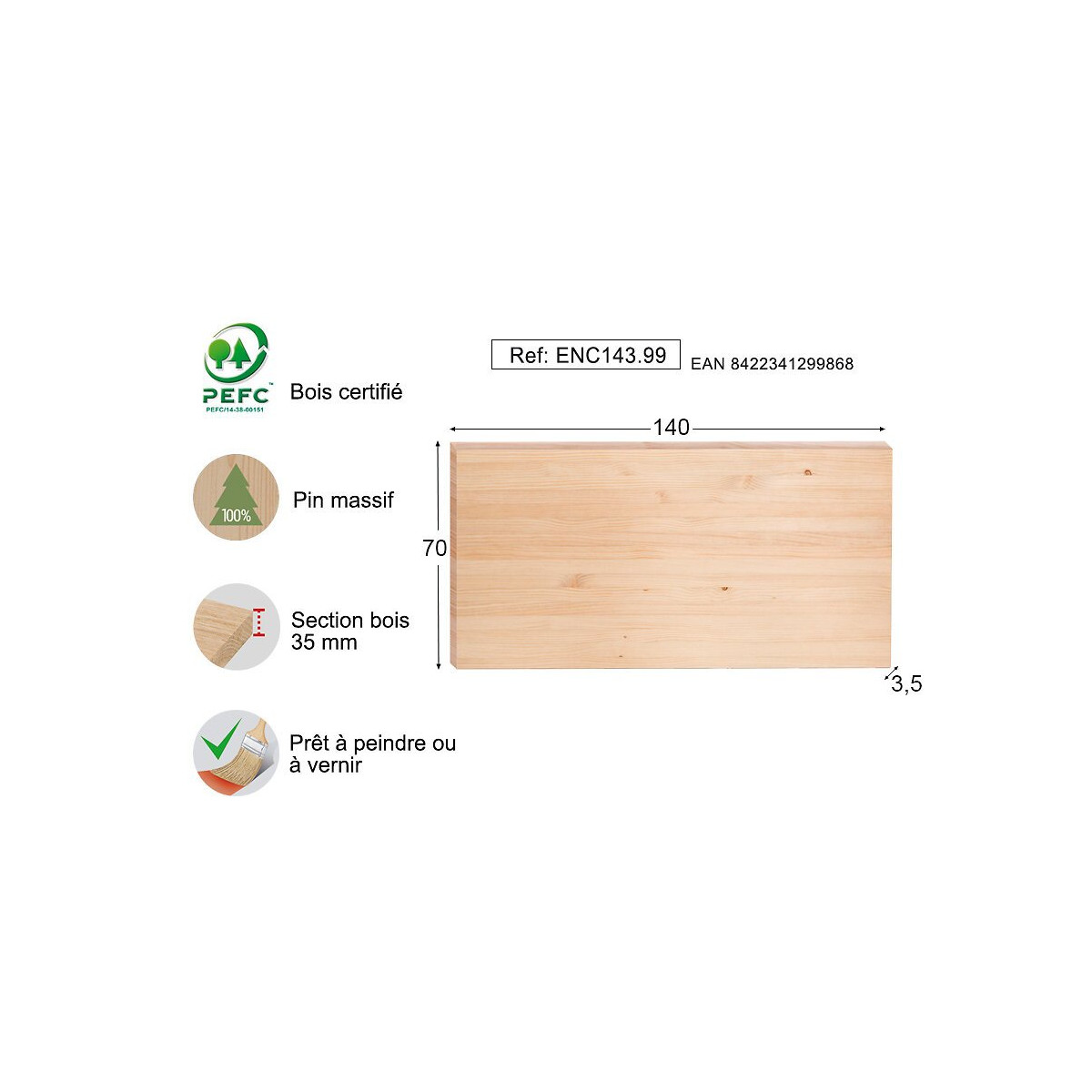 Vous cherchez un bureau sur lequel vous pouvez travailler sans problème ? Ce plateau en pin massif vous aidera à créer un espace propice aux études ou au travail. Plateau durable et résistant grâce à son épaisseur de 3, 5cm. Non verni, vous pouvez laisser la surface dans sa couleur naturelle ou vous pouvez la peindre ou la vernir et lui donner un aspect vieilli ou vintage. Choisissez parmi la vaste gamme de tréteaux d'Astigarraga Kit Line et créez votre propre bureau pour étudier ou travailler chez vous ou dans un bureau. Complétez-le avec les tiroirs de la même marque et créez un ensemble complet avec des rangements supplémentaires. Avec les tréteaux, vous pourrez également créer une table à manger. Le bois de ce plateau est certifié PEFC. Cette certification atteste que le bois d'Astigarraga Kit Line provient d'une gestion responsable des forêts durables.