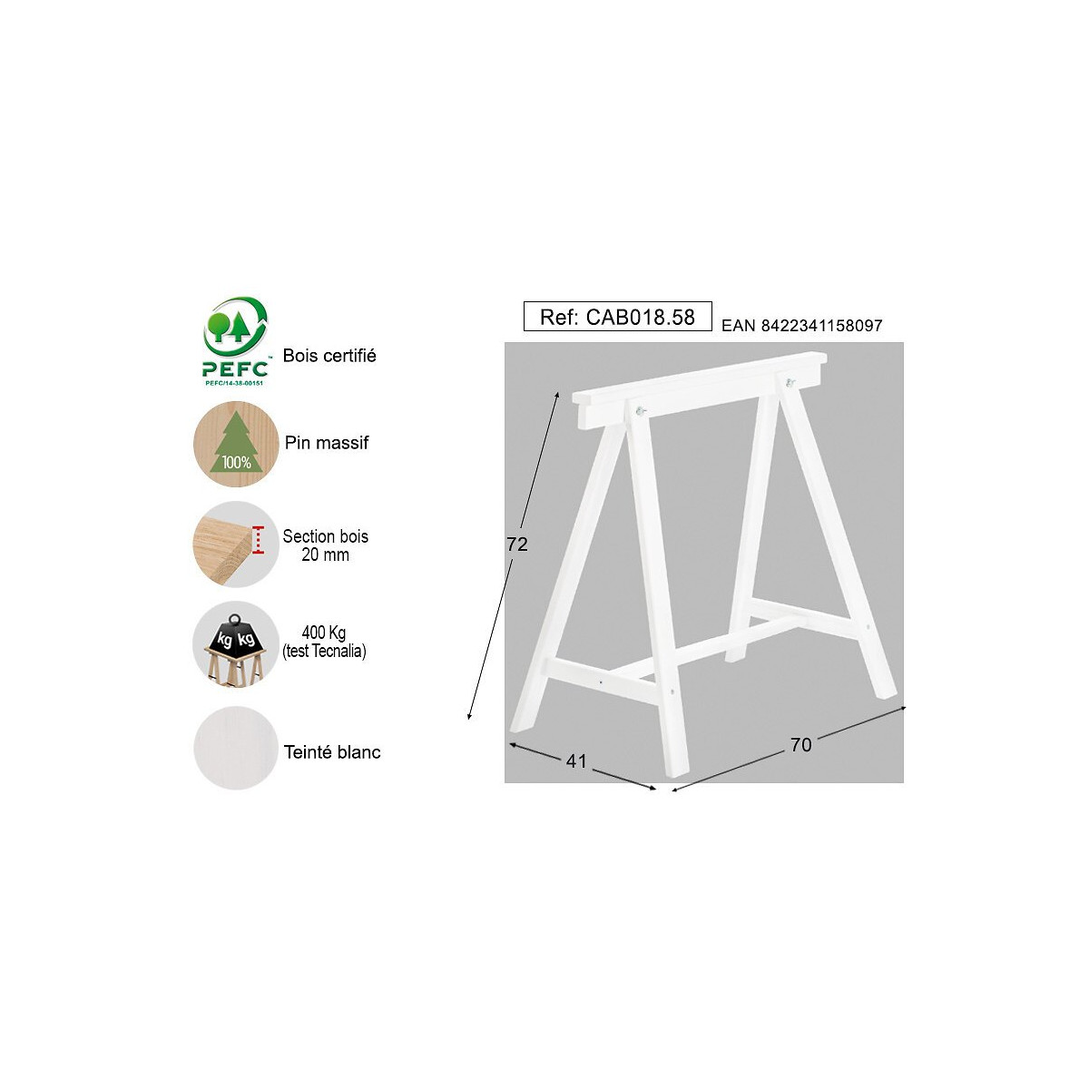 Chez vous ou au bureau, créez un espace de travail agréable. Avec ce tréteau décoratif en pin massif non traité et teint en blanc, vous pourrez créer un bureau élégant, où placer votre ordinateur. Avec ses lignes droites et simples, il prend peu de place. La partie inférieure de la table peut être complétée avec les blocs de la série Natura d'Astigarraga Kit Line. Vous gagnerez en espace de rangement. Combinez deux tréteaux Deco avec des plateaux en bois ou en verre et des mini blocs de la même marque pour créer un bureau pratique et complet. Deux unités supportent jusqu'à 400kg. Le tréteau est également disponible en finition naturelle et en noir. Le bois de ce tréteau est certifié PEFC. Cette certification atteste que le bois d'Astigarraga Kit Line provient d'une gestion responsable des forêts locales et durables.