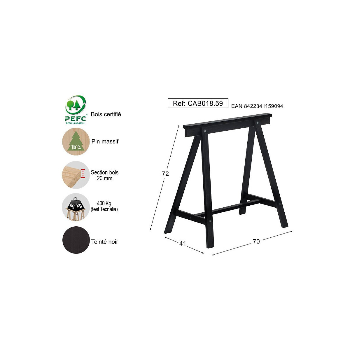 Chez vous ou au bureau, créez un espace de travail agréable. Avec ce tréteau décoratif en pin massif non traité et teint en noir, vous pourrez créer un bureau élégant, où placer votre ordinateur. Avec ses lignes droites et simples, il prend peu de place. La partie inférieure de la table peut être complétée avec les blocs de la série Natura d'Astigarraga Kit Line. Vous gagnerez en espace de rangement. Combinez deux tréteaux Deco avec des plateaux en bois ou en verre et des mini blocs de la même marque pour créer un bureau pratique et complet. Deux unités supportent jusqu'à 400kg. Le tréteau est également disponible en finition naturelle et en blanc. Le bois de ce tréteau est certifié PEFC. Cette certification atteste que le bois d'Astigarraga Kit Line provient d'une gestion responsable des forêts locales et durables.