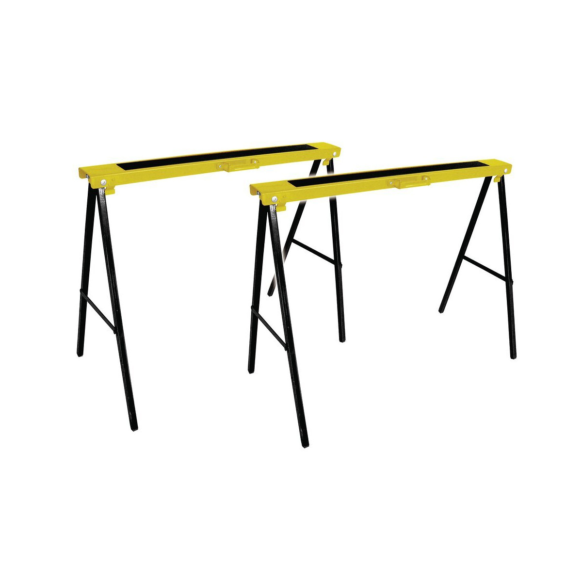 Lot de 2 treteaux pliants en métal. Chargement maximum : 100 kg/pièce. Dimension ouvert : 99.5x50 x78cm. Dimension fermé : 99.5x10x7cm