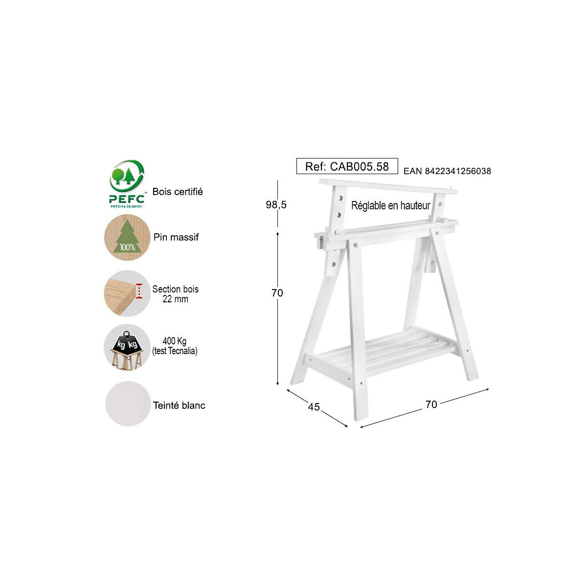 Besoin d'inspiration pour créer un bureau ? Avec deux tréteaux et un plateau, vous pourrez créer votre propre bureau pour étudier, travailler ou dessiner. Fabriqué en pin non traité et teint en blanc, il est réglable en hauteur (de 70 à 98cm). Combinez-les avec les plateaux en bois ou en verre d'Astigarraga Kit Line et créez un bureau personnalisé chez vous ou au travail. Vous pouvez le compléter avec des mini blocs ou des boîtes de la même marque. Le tréteau Archi Tec, disponible en noir et en bois naturel, est inclinable. Vous pouvez ajuster le plateau - à plat ou incliné - en fonction de l'usage que vous allez en faire (écriture, peinture...). Deux unités supportent jusqu'à 400kg. Il dispose d'une tablette d'appoint sur la partie inférieure afin que vous puissiez y poser des livres, une imprimante, des boîtes ou tout ce que vous voudrez. Le bois de ce tréteau est certifié PEFC. Cette certification atteste que le bois d'Astigarraga Kit Line provient d'une gestion responsable des forêts locales et durables.
