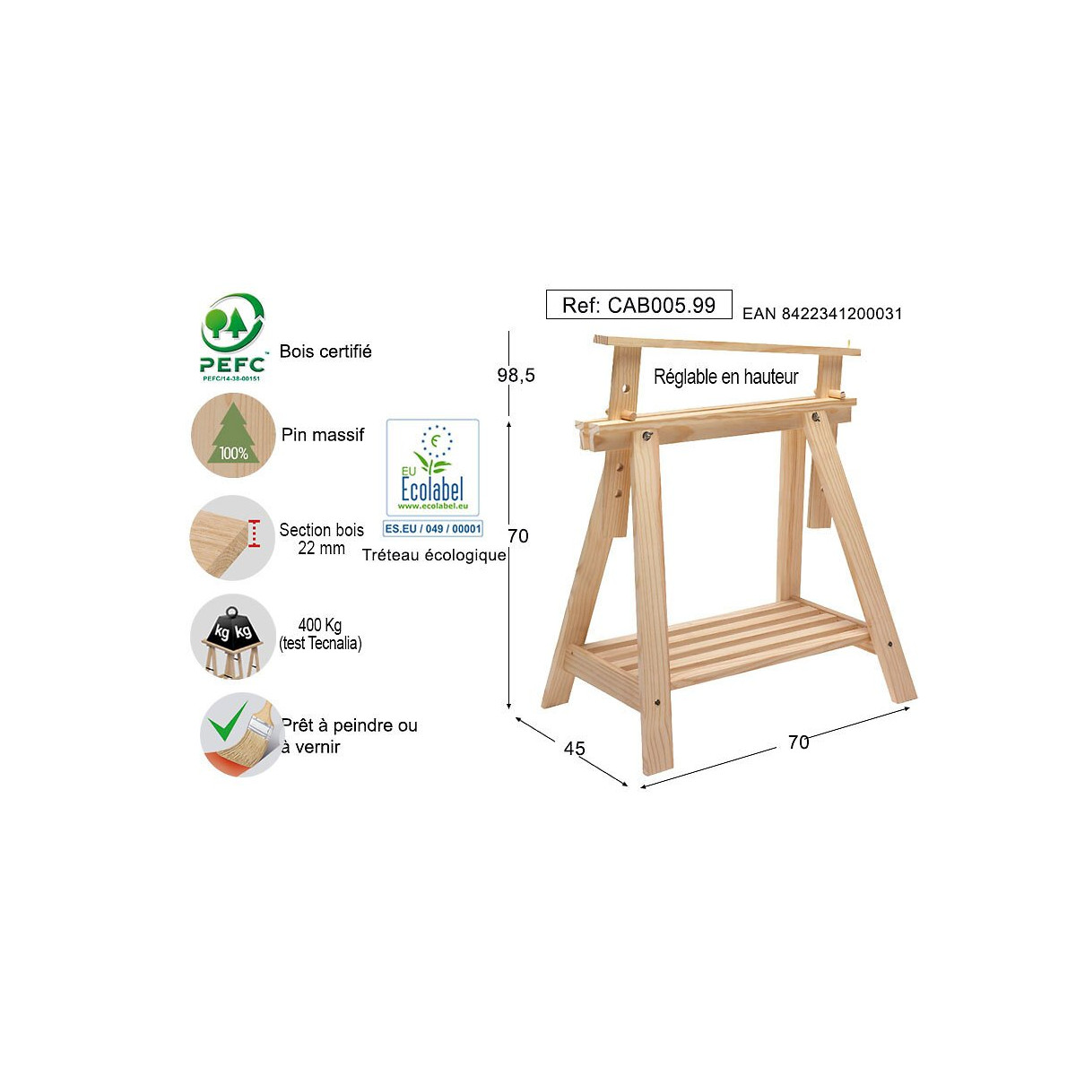 Besoin d'inspiration pour créer un bureau ? Avec deux tréteaux et un plateau, vous pourrez créer votre propre bureau pour étudier, travailler ou dessiner. Fabriqué en pin non traité, il est réglable en hauteur (de 70 à 98cm). Combinez-les avec les plateaux en bois ou en verre d'Astigarraga Kit Line et créez un bureau personnalisé chez vous ou au travail. Vous pouvez le compléter avec des mini blocs ou des boîtes de la même marque. Le tréteau Archi Tec, également disponible en noir et en blanc, est réglable et inclinable. Vous pouvez ajuster le plateau - à plat ou incliné - en fonction de l'usage que vous allez en faire (écriture, peinture, dessin...). Deux unités supportent jusqu'à 400kg. Il dispose d'une tablette d'appoint sur la partie inférieure afin que vous puissiez y poser des livres, une imprimante, des boîtes ou tout ce que vous voudrez. Le bois de ce tréteau est doublement certifié : l'écolabel de l'Union européenne et le PEFC. Cette certification atteste que le bois d'Astigarraga Kit Line provient d'une gestion responsable des forêts durables. Testé chez Tecnalia.