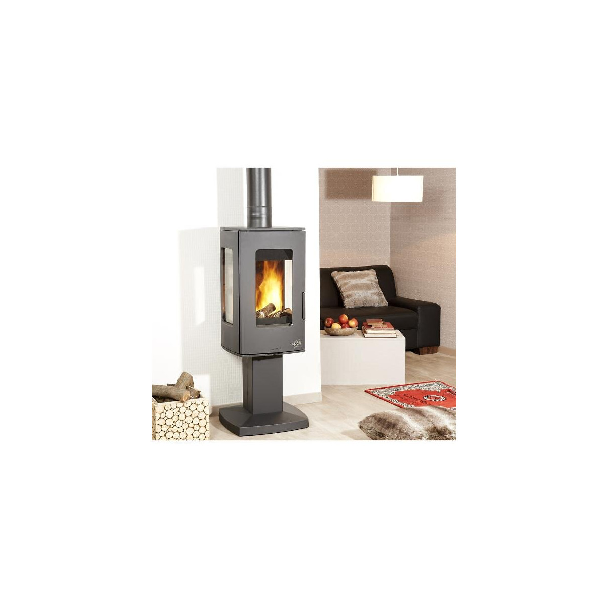 Le poêle à bois Cerafonte de GODIN est étanche. Sa régulation se fait manuellement . Ses 3 surfaces vitrées donnent un grande visibilité du feu et un plaisir optimal. Caractéristiques : Habillage fonte 3 surfaces vitrées Corps de chauffe en fonte Chargement avant Régulation manuelle Etanche : compatible avec les VMC double flux, idéal pour les maisons HQE ou BBC (les nouvelles habitations étant de plus en plus étanches, les appareils peuvent être perturbés par la dépression créée par la VMC ou une hotte de cuisine) Possibilité d'arrivée d'air extérieur Ø 100 mm Raccordement arrière ou dessus Ø 150/153 mm .