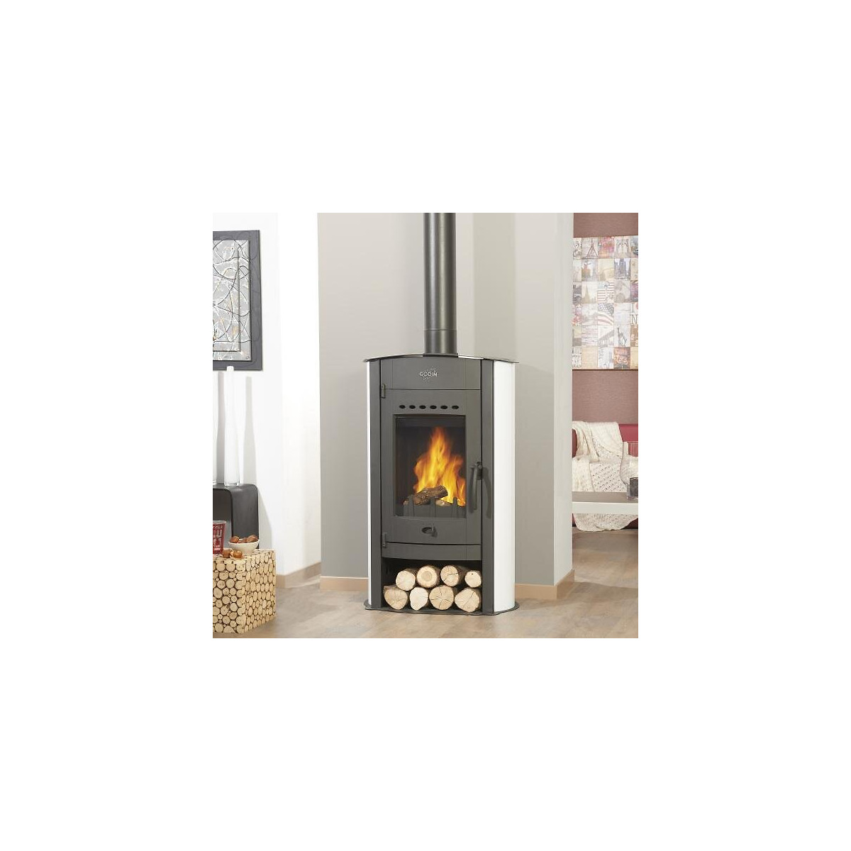 Le poêle à bois Biodesign de GODIN est dôtée d'une porte galbée. Solide, son corps de chauffe est en fonte. Caractéristiques : Habillage acier avec flancs émaillés blanc Porte galbée Corps de chauffe en fonte Régulation manuelle Raccordement arrière ou dessus Ø 153 mm Hauteur du sol/axe buse : 1080 mm .