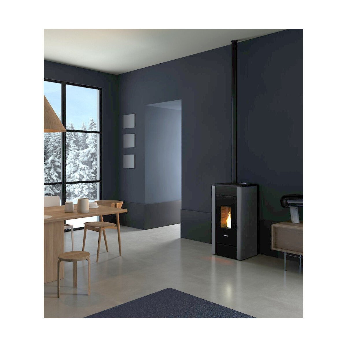 Structure en acier et couvercle en fonte - Puissance nominale: 7,0 kW - Rendement nominal min/max: 90,0-92,0 % - Capacité de chauffe en m³ (max): 168 - Capacité réservoir: 15 kg - Sortie des fumées: Ø 80 mm postérieure et supérieure - Dimensions Poêle: L 48,0 - P 46,0 - H 94,3 - Poids: kg. 65 Poêle à pellet ètanche avec Avis Technique CSTB - 7 etoiles FLAMME VERTE - Classe énergétique: A+ - ECO DESIGN 2022Spécifications techniques