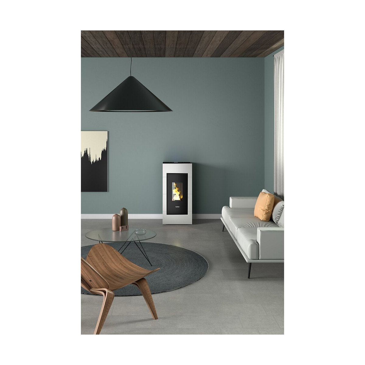 Structure en acier - Puissance nominale: 7,0 kW - Rendement nominal min/max: 90,0-91,2 % - Capacité de chauffe en m³ (max): 168 - Capacité réservoir: 15 kg - Sortie des fumées: Ø 80 mm postérieure - Dimensions Poêle: L 46,0 - P 45,2 - H 95,7 - Poids: kg. 61 , Poêle à pellet ètanche avec Avis Technique CSTB - 7 etoiles FLAMME VERTE - Classe énergétique: A+ - ECO DESIGN 2022Spécifications techniques