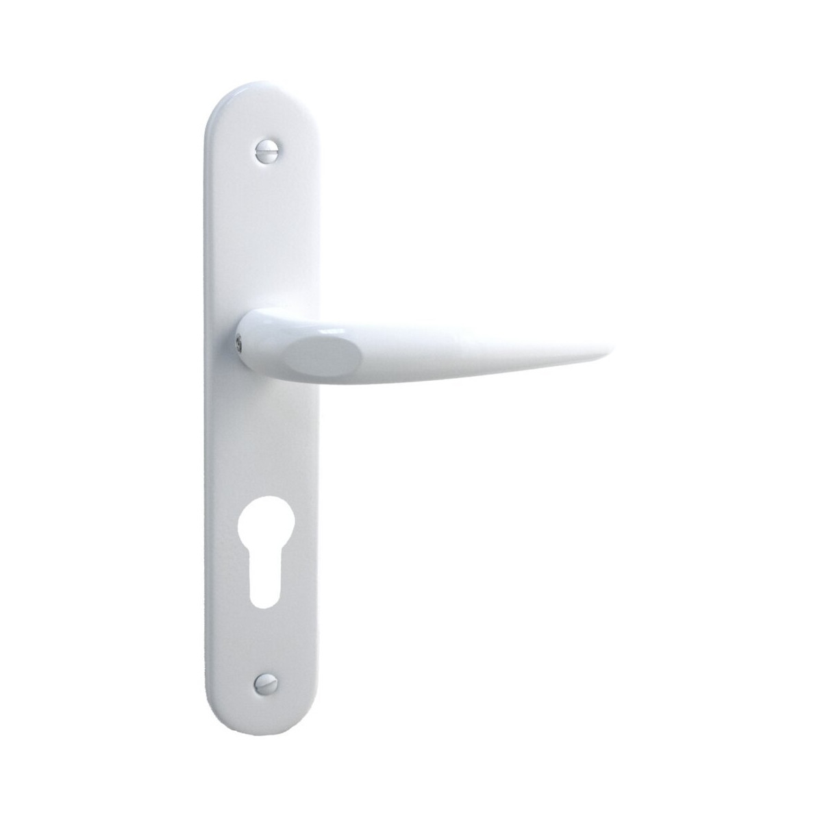 Paire de poignées de porte d'entrée sur plaque ronde Pianosa en aluminium blanc, cylindre. Entraxe de fixation 195mm. Visserie fournie.