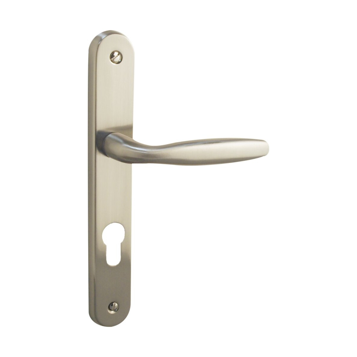 Poignée de porte bristol alu nickel mat sur plaque cylindre 195mm
