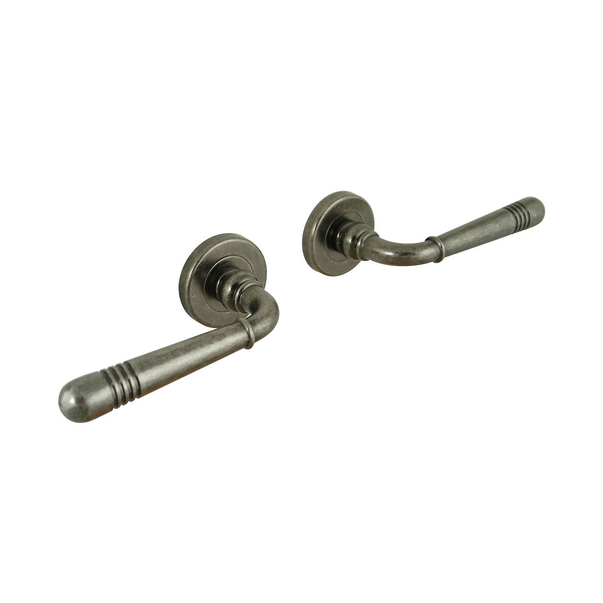 Ensemble poignée aluminium / rosaces acier Mauriac patine. Visserie fournie. Dimensions : Carré 7 mm.Spécifications techniques
