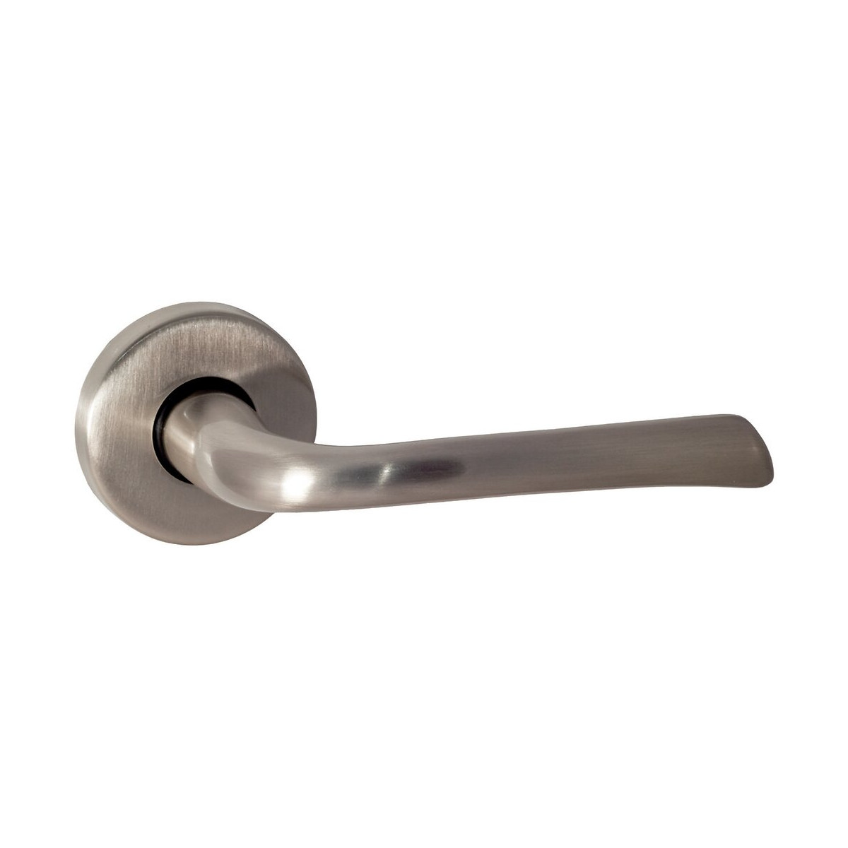 Paire de poignées sur rosace Rhapsodie gris nickel mat bec de cane. Diamètre de la rosace : 50mm. Rosaces de fonction clé, cylindre ou condamnation vendues séparément.Spécifications techniques