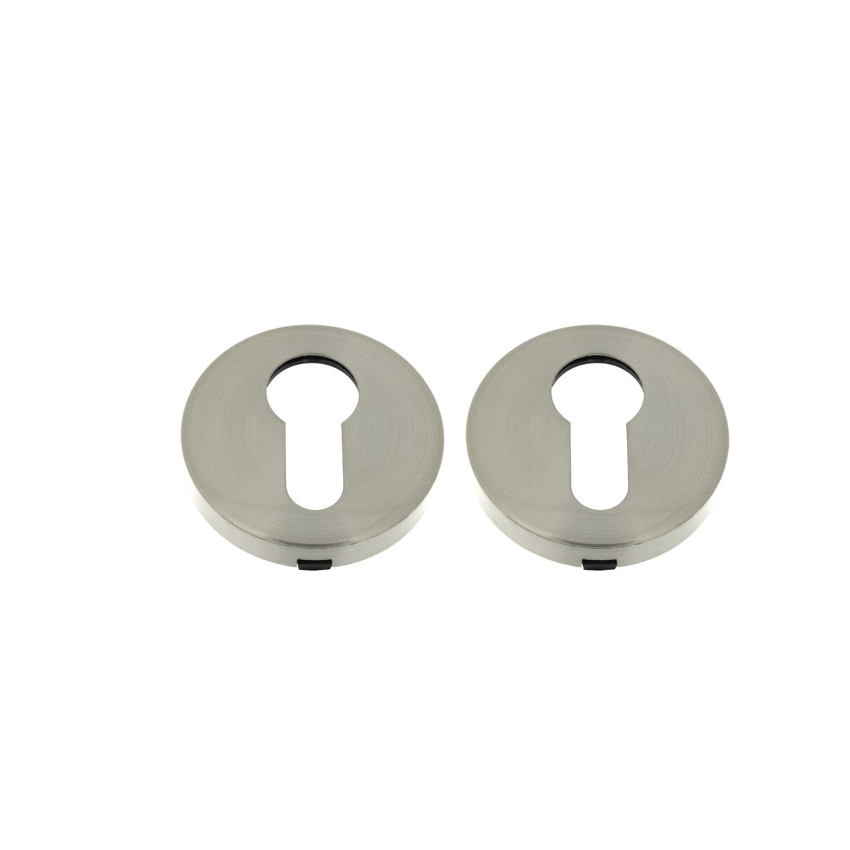Paire de rosaces en laiton finition nickel mat à perçage cylindre. Fixation vis à bois fournie. Dimension : Diamètre 50 mm.Spécifications techniques