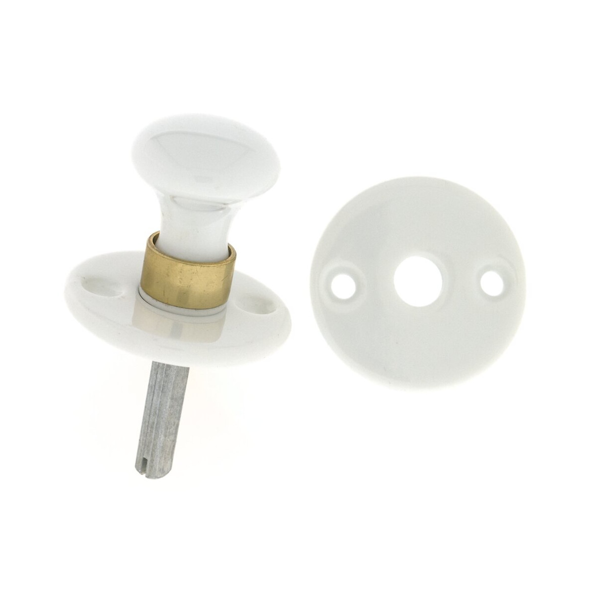 Paire de rosaces de fonction en porcelaine à condamnation/décondamnation. Coloris blanc. Visserie fournie. Dimension : Diamètre 50 mm.Spécifications techniques