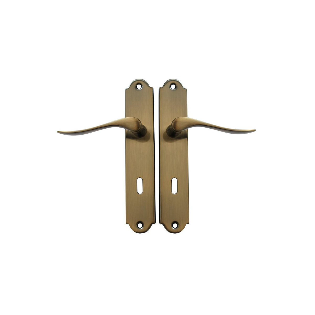 Ensemble poignées de porte Irina serrure avec trou de serrure (TS) en laiton massif patiné