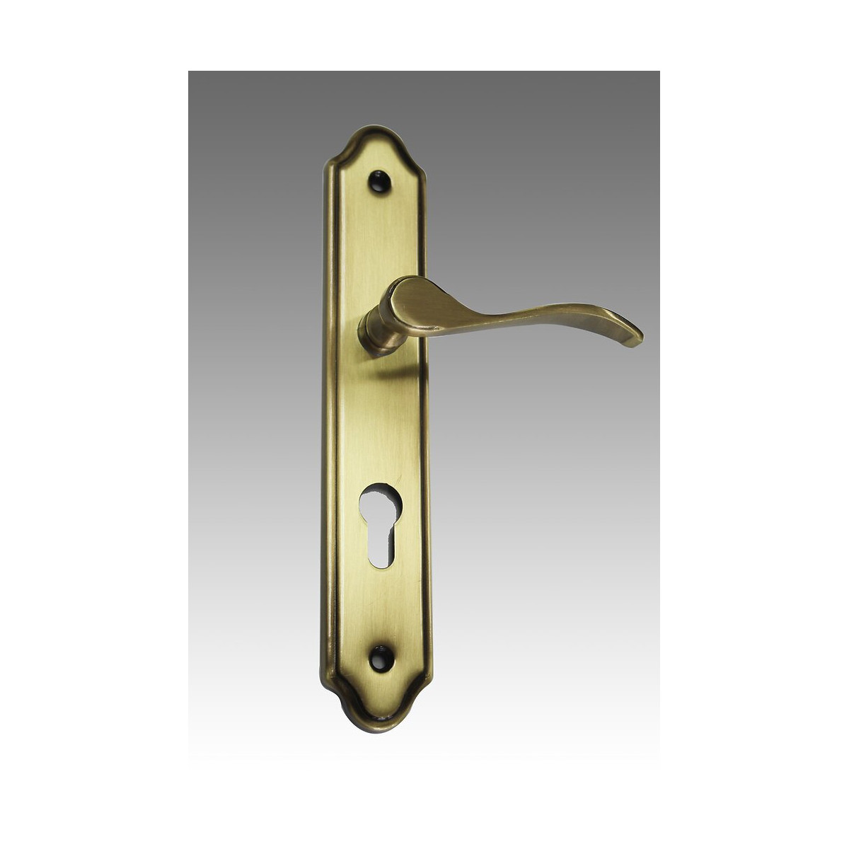 Ensemble poignées de porte Dorine avec trou de cylindre (TCY) en aluminium finition doré vieilli