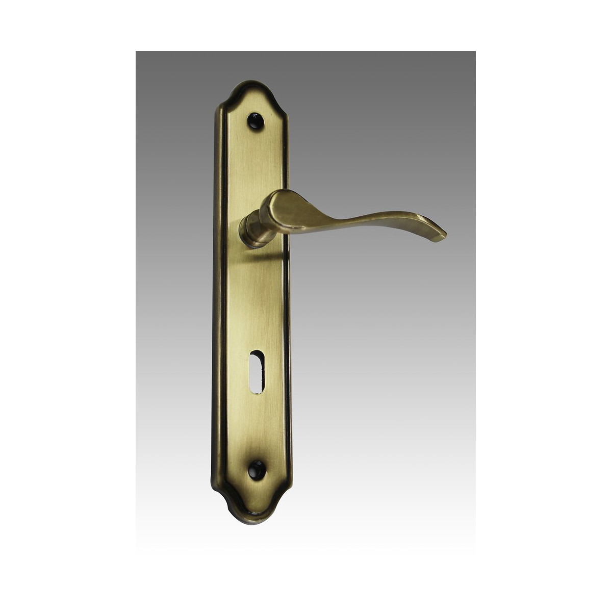 Ensemble poignées de porte Dorine serrure avec trou de serrure (TS) en aluminium finition doré vieilli