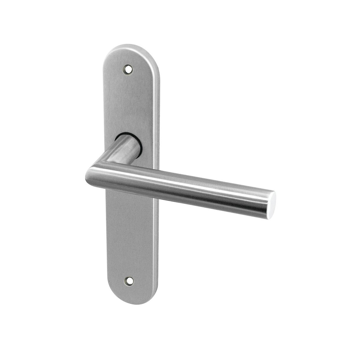 Ensemble de poignées de porte sur plaque Alba inox bec de cane 195mm