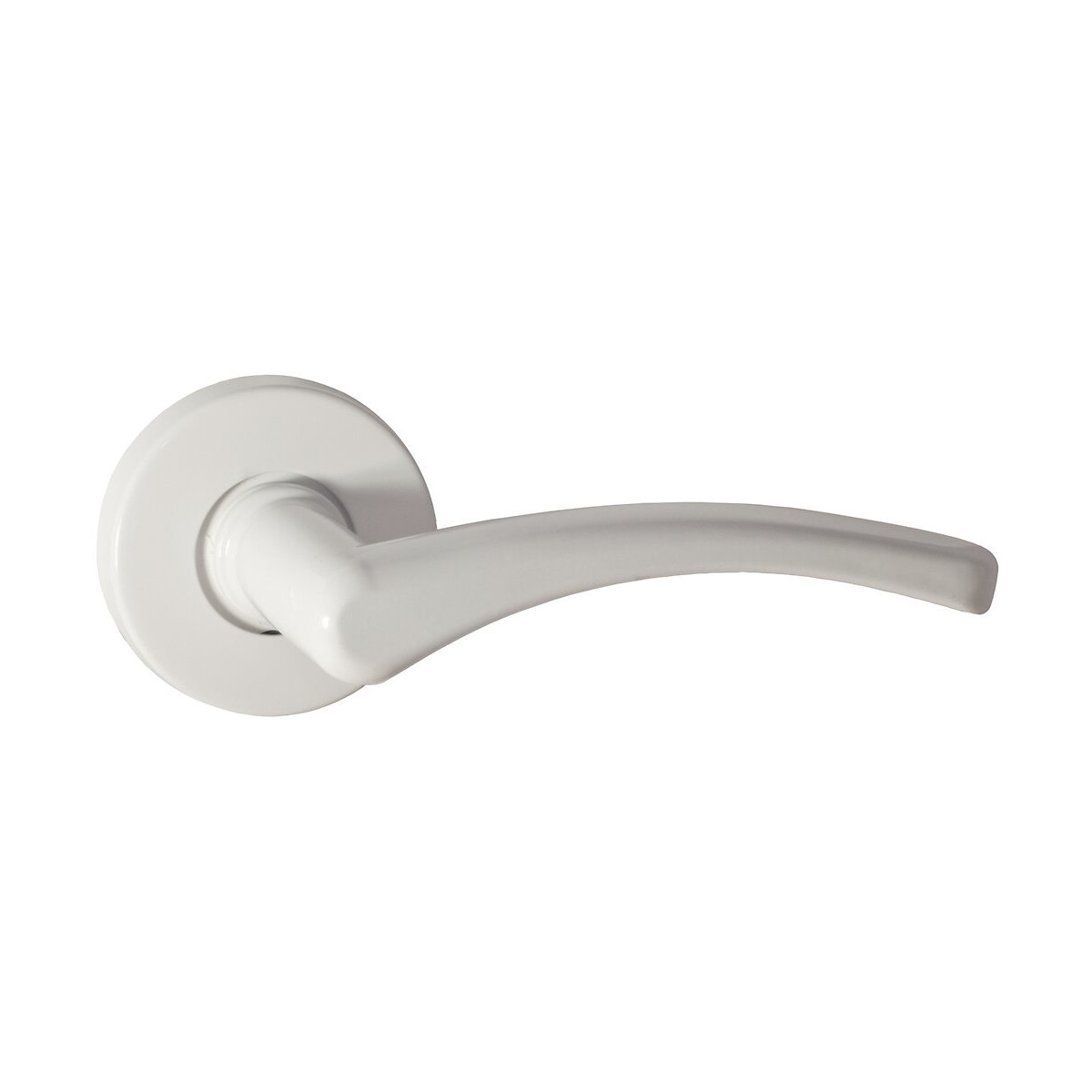 Ensemble de poignées de porte sur rosace Eva alu blanc bec de cane