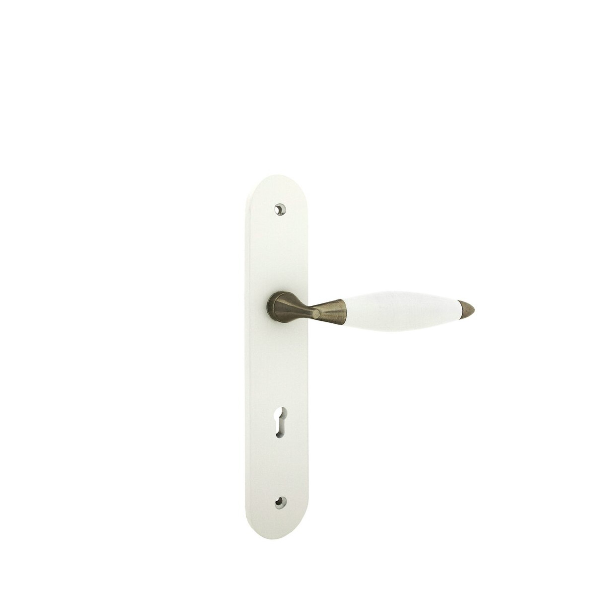 Poignée de porte Athena bois blanc trou de clé entraxe 195mm