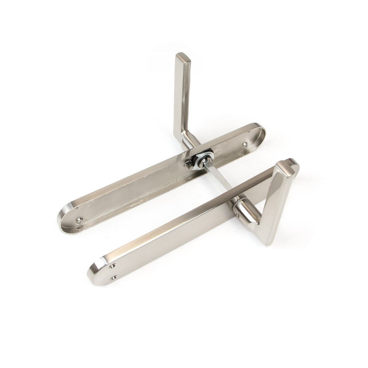 Ensemble de poignées pour porte d'intérieur. Ils sont disponibles en modèles avec rosace ronde de 50 mm de diamètre, carré 50x50 mm et avec plaque. Elles sont valables pour portes d'épaisseur entre 35mm et 45 mm et ont un ressort de rappel pour retourner la béquille à la position horizontale. Fabriquées en aluminium et zamak avec finition nickel satiné et un design actuel et élégant, elles sont idéales pour n'importe quel type d'ambiance. Chaque kit comprend: 1 ensemble de poignées pour porte, le carré de 8mm et les ferrures pour le montage.Pour le nettoyage, n'utilisez pas de détergents contenant du chlore, comme l'eau de Javel, le salfuman, etc.Spécifications techniques