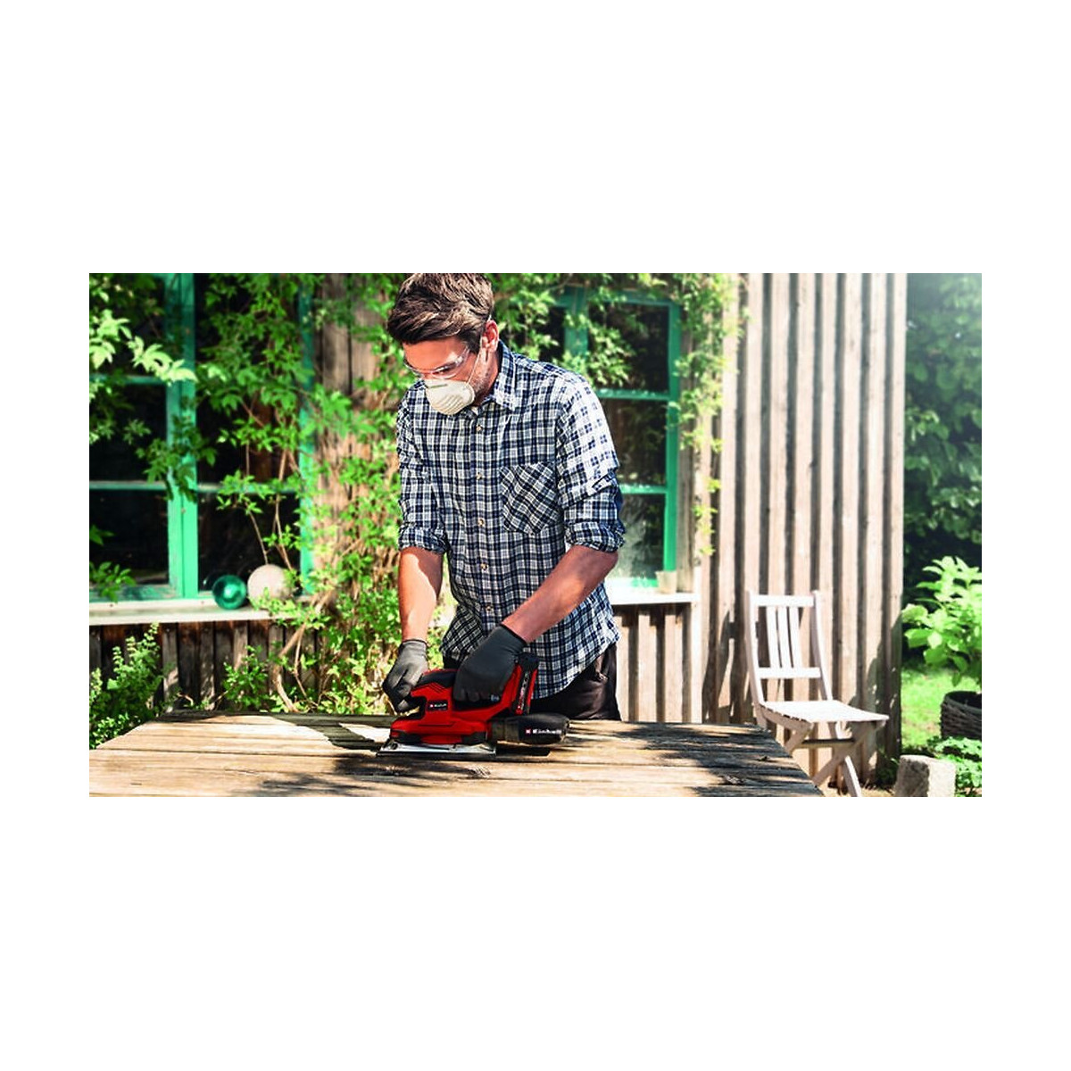 La ponceuse vibrante sans fil TE-OS 18/230 Li Solo Einhell est un outil puissant de la gamme flexible et combinable à l’infini Power X-Change Einhell. Cette ponceuse vibrante puissante et robuste est parfaitement adaptée au ponçage de surfaces planes, comme des pièces, planches de bois, lambris ou revêtements. L'outil est vendu sans batterie ni chargeur (disponibles séparément). Les + du produit Fait partie de la gamme Power X-Change Ponceuse vibrante puissante et robuste Outil parfaitement adapté au ponçage de surfaces planes Variateur électronique pour une adaptation de la vitesse de rotation en fonction du matériau Changement du papier abrasif facile et rapide grâce à la fixation auto-agrippante (micro-hook and loop) Convient également aux papiers abrasifs sans fixation auto-agrippante Semelle en aluminium robuste et durable Surfaces de préhension avec revêtement souple Softgrip ergonomiques Le sac à poussières collecte la poussière résultant du ponçage. Possibilité de raccordement d’un aspirateur pour une propreté maximale 3 feuilles de papier abrasif incluses pour une utilisation immédiate de l’outil Outil vendu sans batterie ni chargeur (disponibles séparément) Caractéristiques techniques Vitesse d'oscillation : 14000-22000 min^-1 Circuit oscillant : 2.5 mm Zone de ponçage : 230x115 mm Taille du papier à poncer (accroche à pince) : 280 mm x 115 mm Taille du papier à poncer (accroche Hook and loop) : 230 mm x 115 mm