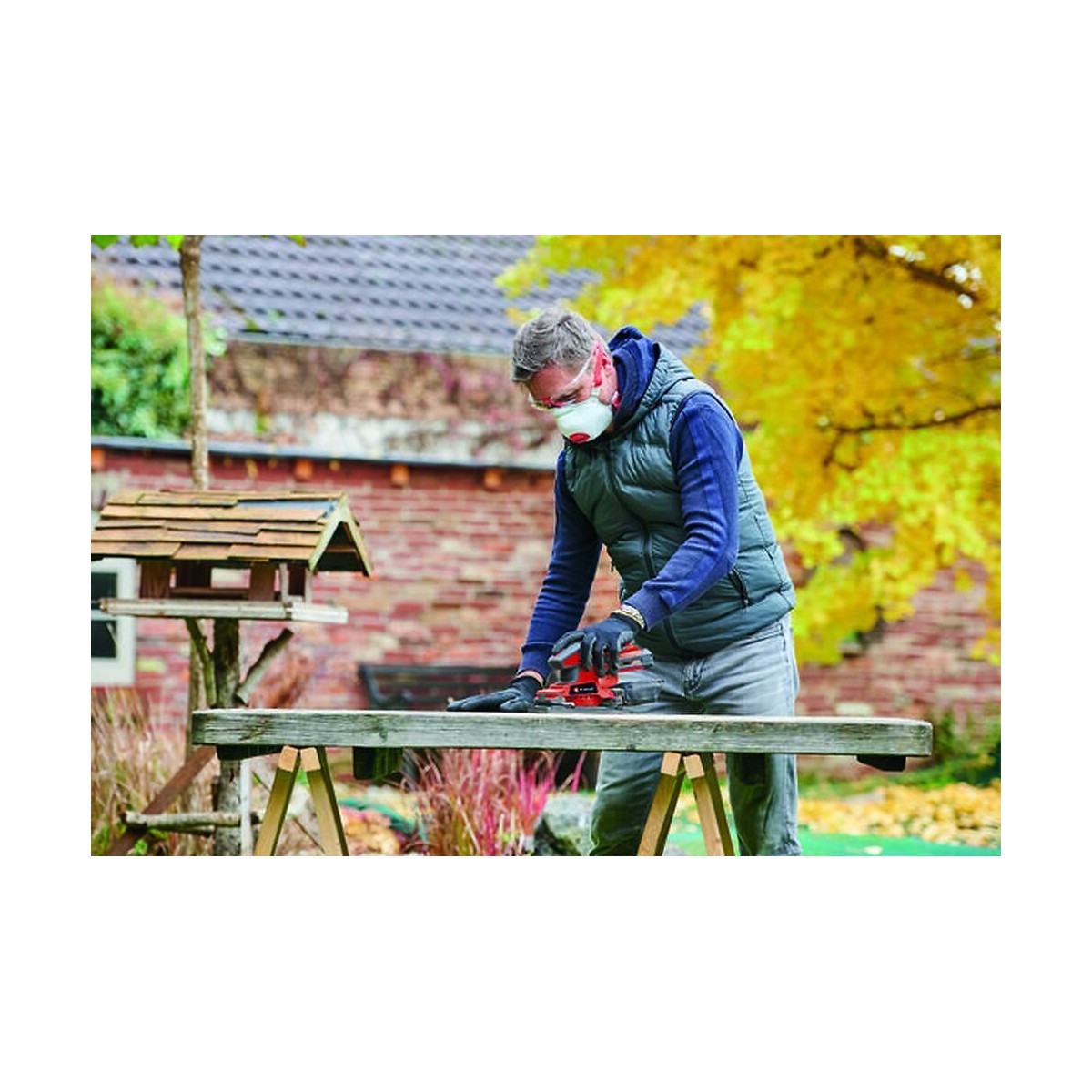La ponceuse vibrante sans fil TC-OS 18/187 Li Solo Einhell est un outil léger et maniable de la gamme Power X-Change, et bénéficie de tous les avantages de cette famille de produits flexibles et combinables à l’infini. Cette ponceuse vibrante sans fil est parfaitement adaptée au ponçage de surfaces planes, pièces de grande dimension, revêtements ou panneaux. L'outil est vendu sans batterie ni chargeur (disponibles séparément). Les + du produit Fait partie de la gamme Power X-Change Ponceuse vibrante légère et maniable Outil parfaitement adapté au ponçage de surfaces planes Changement du papier abrasif facile et rapide grâce à la fixation auto-agrippante (micro-hook and loop) Convient également aux papiers abrasifs sans fixation auto-agrippante Grandes surfaces de préhension en revêtement souple Softgrip pour une manipulation confortable Le sac à poussières collecte la poussière résultant du ponçage. Permet le raccordement d’un système d’aspiration externe Avec une feuille de papier abrasif pour une utilisation immédiate Outil vendu sans batterie ni chargeur (disponibles séparément) Caractéristiques techniques Vitesse d'oscillation : 24000 min^-1 Circuit oscillant : 2 mm Zone de ponçage : 187 x 90 mm Taille du papier à poncer (accroche à pince) : 237 mm x 94 mm Taille du papier à poncer (accroche Hook and loop) : 187 mm x 94 mmSpécifications techniques