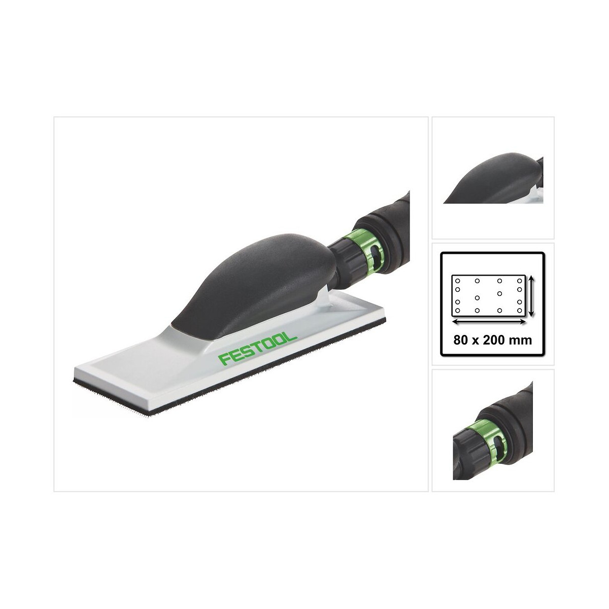 Contenu du paquet : - 1x Festool HSK-A 80x200 Cale de ponçage - 1x Adaptateur pour tuyau Festool - 1x Adaptateur Festool bypass Description du produit : Le cale de ponçage HSK-A 80x200 de Festool est dotée d'une poignée ergonomique avec surface agréable au toucher. Ses bandes abrasives Festool StickFix de 80 x 200mm sont très maniables. Elle est équipée d'un dispositif lui permettant d'aspirer directement les poussières de ponçage à l'aide des adaptateurs pour tuyau Festool standard. L'adaptateur bypass inclus permet un réglage continu de sa puissance d'aspiration. Cette cale de ponçage est parfaite pour le ponçage manuel des surfaces ou d'arrondis. Grâce à son dispositif d'aspiration, il est également possible de réaliser des travaux de ponçage prolongés. En résumé : cette cale de ponçage est conçue pour tous les travaux de ponçage, du ponçage dégrossissant au ponçage intermédiaire en passant par le ponçage de finition. Festool est un fabricant d'outils électriques dont la réputation n'est plus à démontrer et qui se distingue par ses hauts standards de qualité. Spécifications techniques : Fabricant : Festool Numéro du fabricant : 496965 Désignation du fabricant : HSK-A 80x200 Dimensions : 80 x 200mm Compatibilité : Bandes abrasives Festool STF 80x400 (coupées en deux)