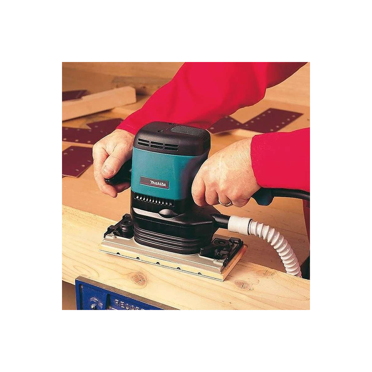 AVANTAGES PRODUIT Ponceuse vibrante très puissante et robuste pour travaux intensifs Fixation de l'abrasif par pince ou par système auto-aggripant Orbite de grande amplitude (5 mm) pour le ponçage de métaux ou le dégrossisage de bois Ponceuse à très faible taux de vibrations grâce à un système d'amortissement Protection de la machine contre les poussières optimisée CARACTERISTIQUES TECHNIQUES Puissance Puissance nominale 600 W Cadence Nombre d'oscillations max. 6000 orb/min Amplitude du mouvement Amplitude d'oscillation 5 mm Dimensions des abrasifs Dimensions du patin de ponçage 115 x 229 mm Dimensions abrasifs standards 115 x 280 mm Niveaux d'exposition Taux de vibration triaxial (ah) 3,5 m/s² Vibration 3ax ponçage (ah) 3,5 m/s² Marge d'incertitude (K) 1,5 m/s² Pression sonore (Lpa) 84 dB (A) Général Dimensions (L x l x h) 283 x 115 x 219 mm Poids net 3,1 kg Longueur cordon d'alimentation 2,5 m ACCESSOIRES DE SERIE 1 x 193294-5 Porte sac à poussière 6 x Feuilles abrasives