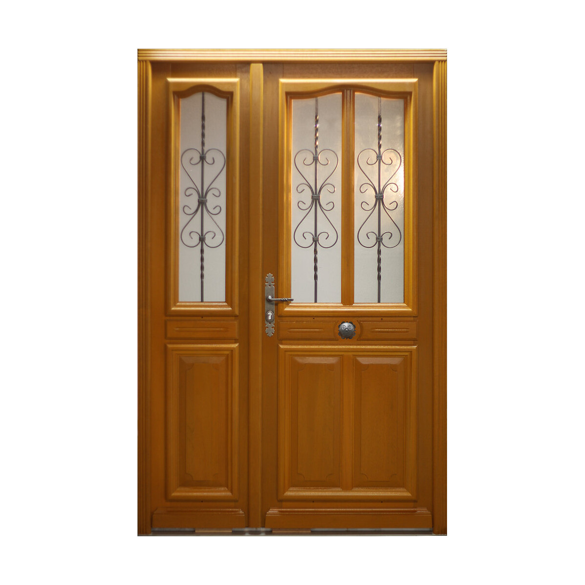 Porte d'entrée en bois exotique méranti, crémone 6 points, seuil aluminium anodisé dormant 46mm.