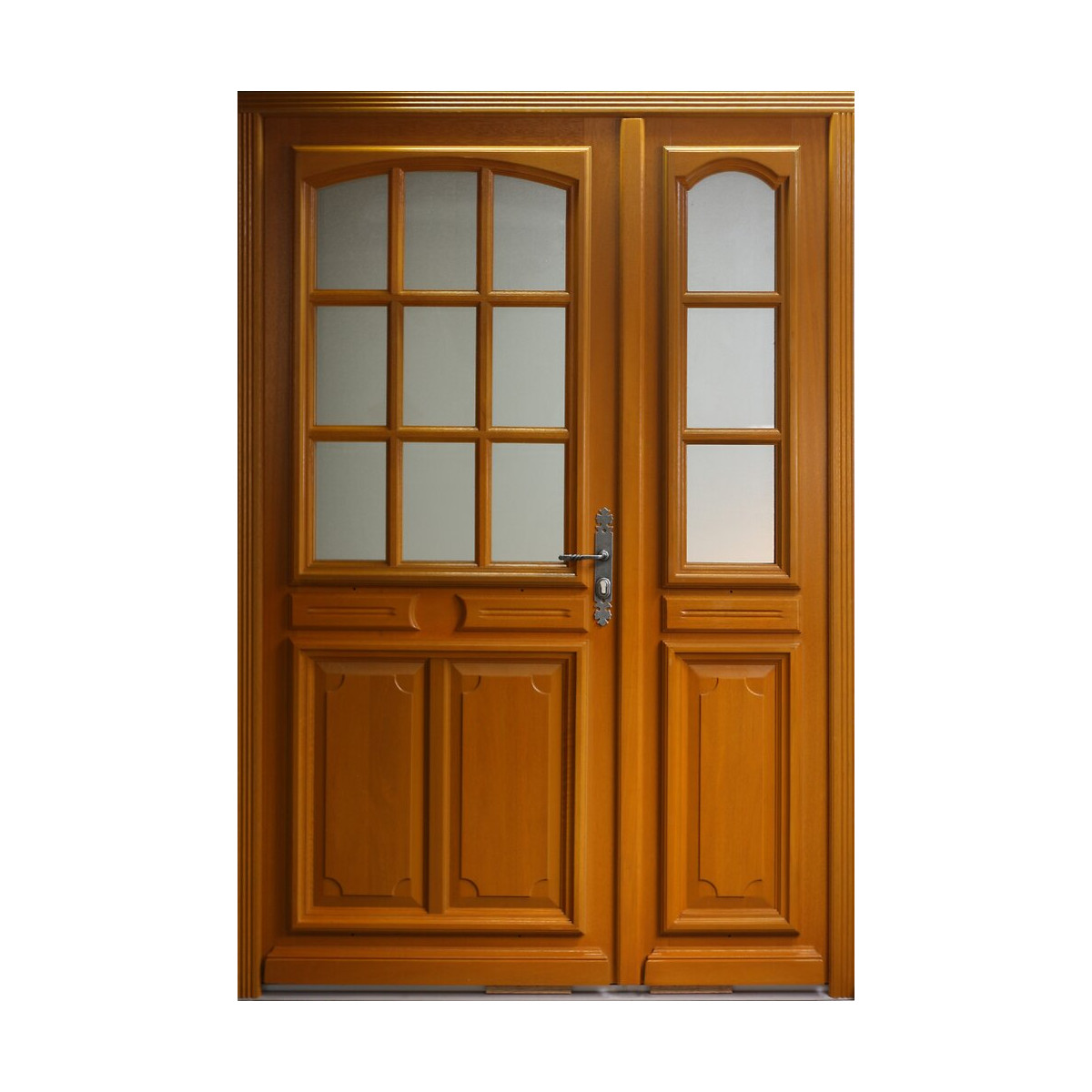 Porte d'entrée en bois exotique méranti, crémone 6 points, seuil aluminium anodisé dormant 46mm.