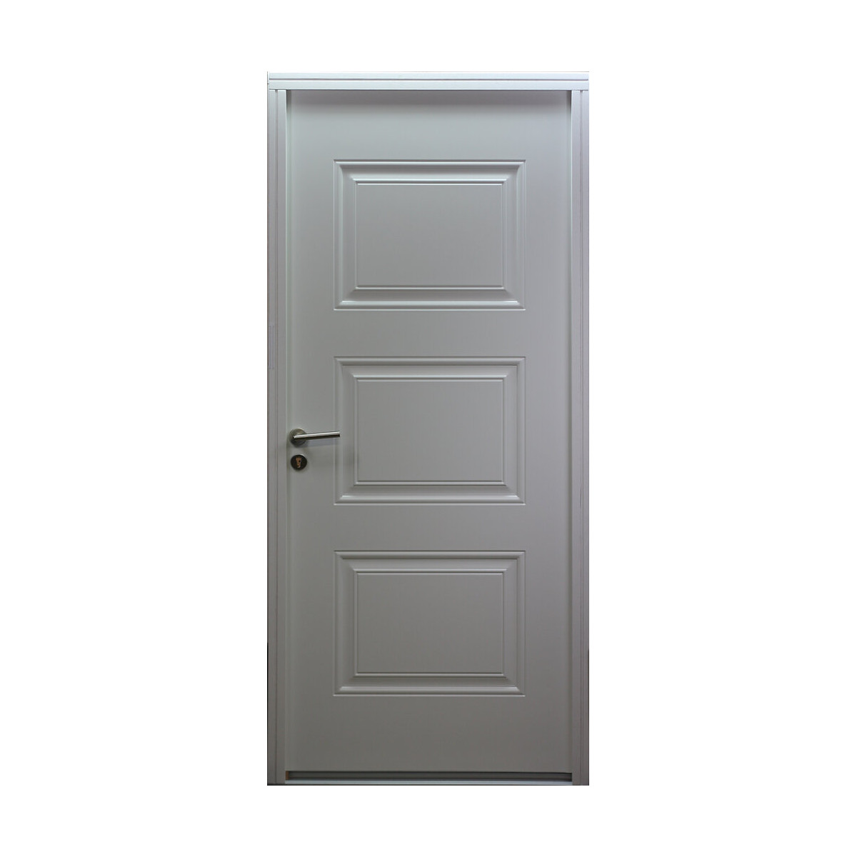 Portes d'épaisseur 46mm ouvrant et dormant, Porte acier 75/100 anticorrosion G40. Crémone à relevage de marque VACHETTE comprenant 6 points de fermeture, seuil aluminium anodisé dormant 46mm.