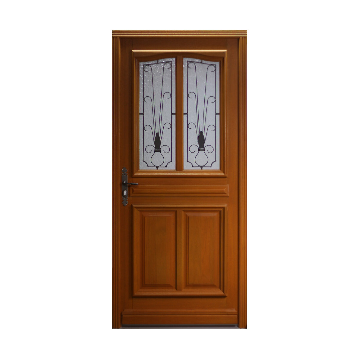 Porte d'entrée en bois exotique méranti, crémone 6 points, seuil aluminium anodisé dormant 46mm.