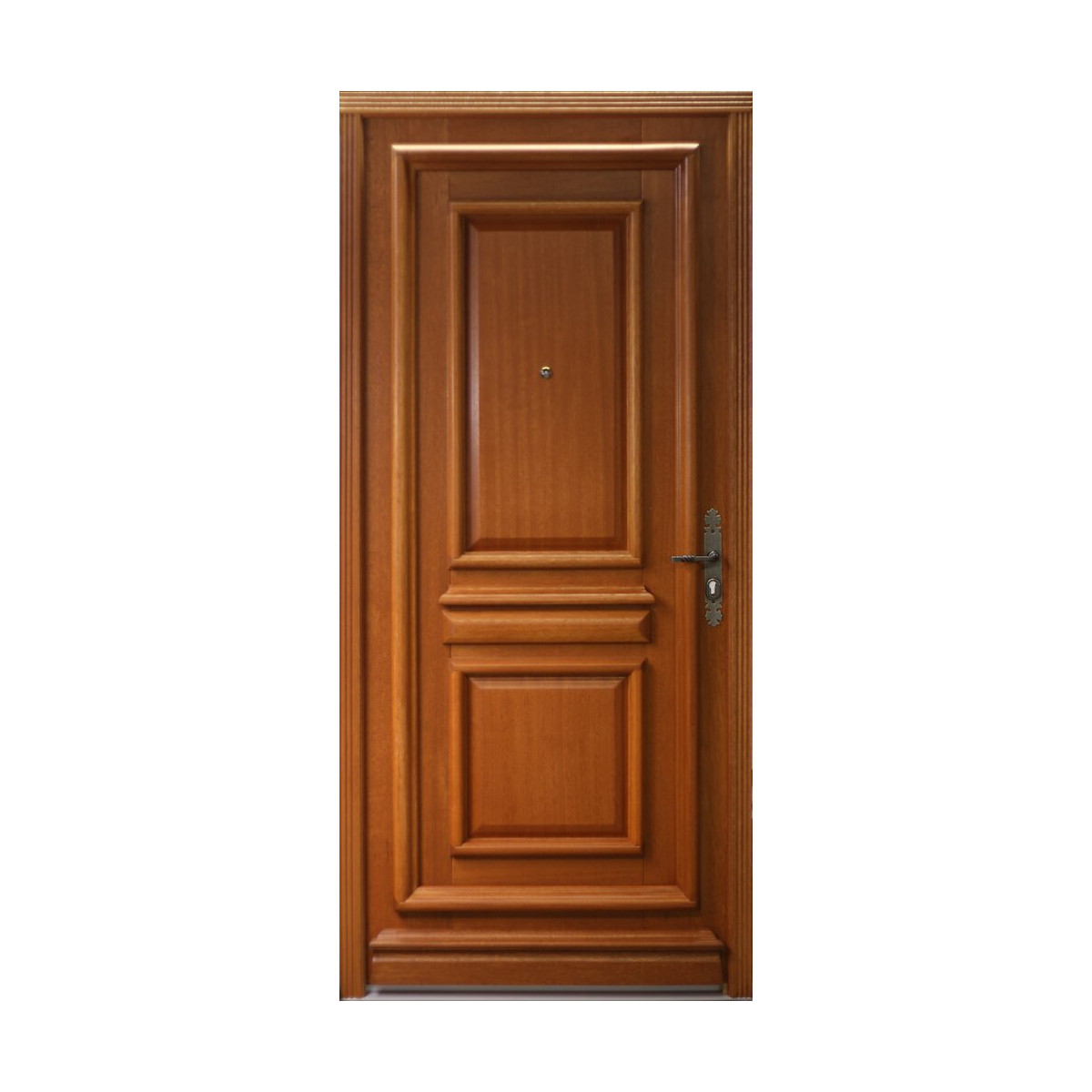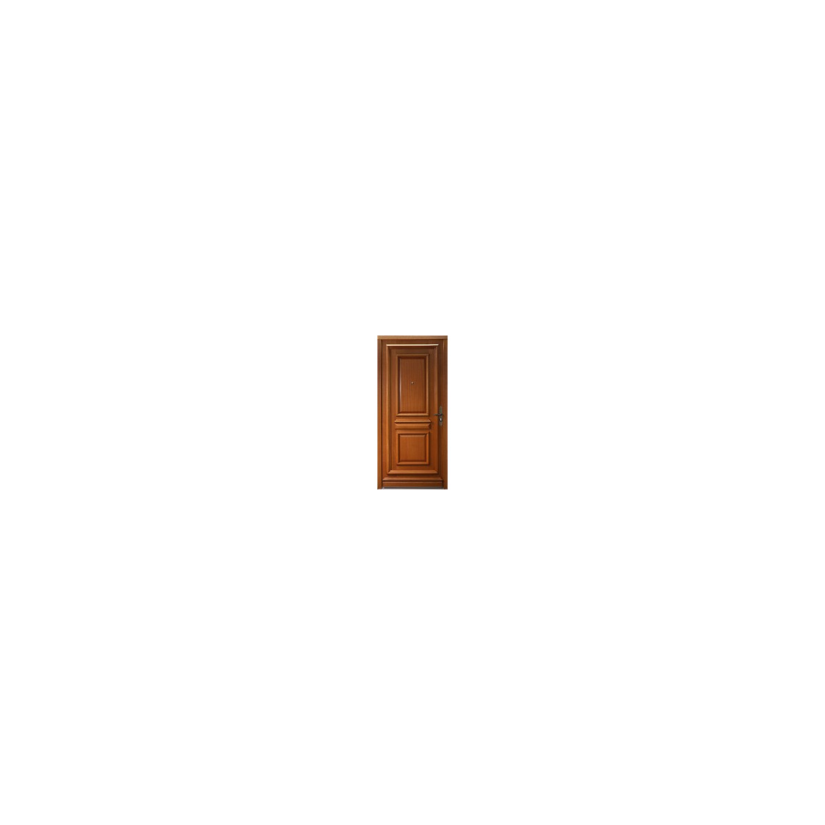 Porte d'entrée en bois exotique méranti, crémone 6 points, seuil aluminium anodisé dormant 46mm.