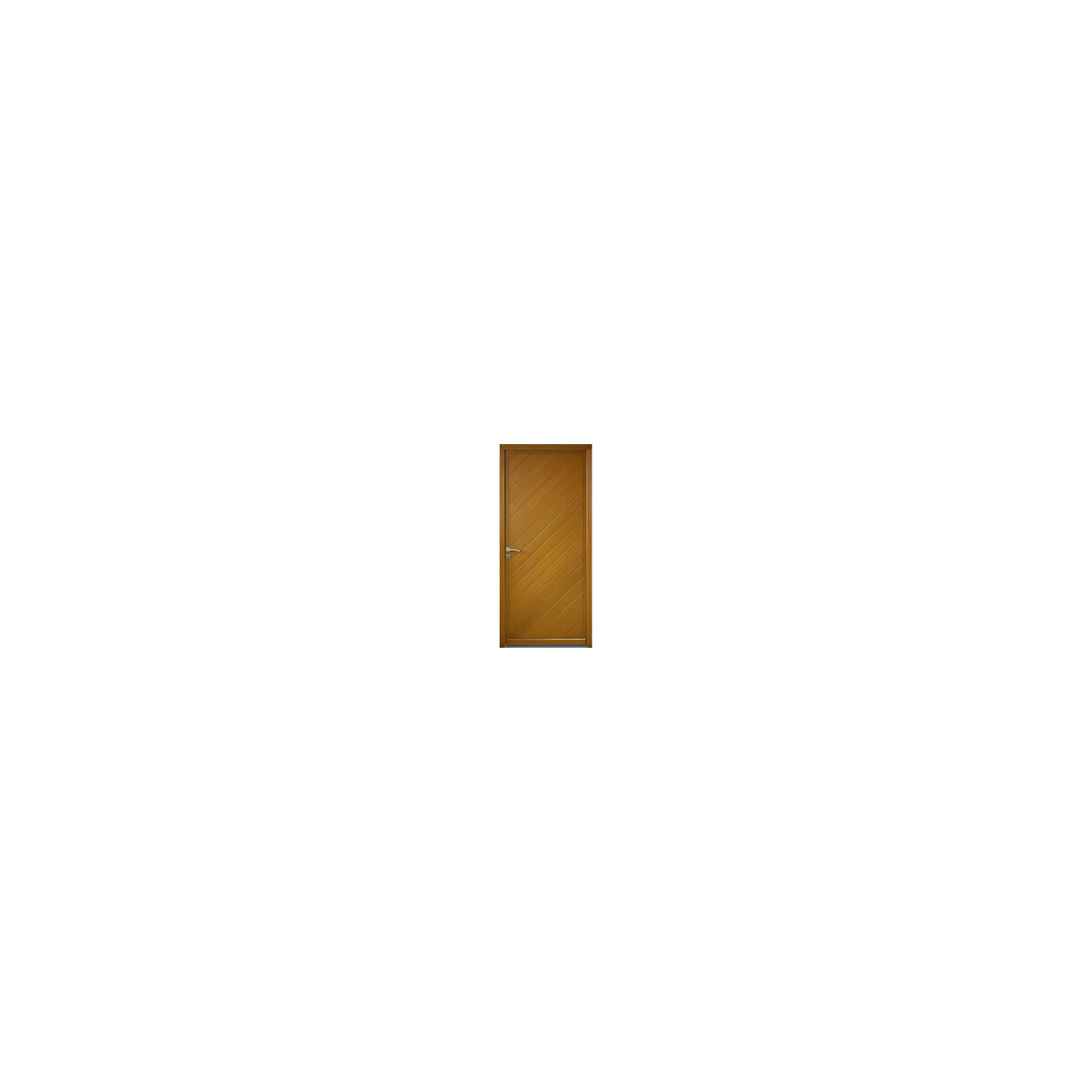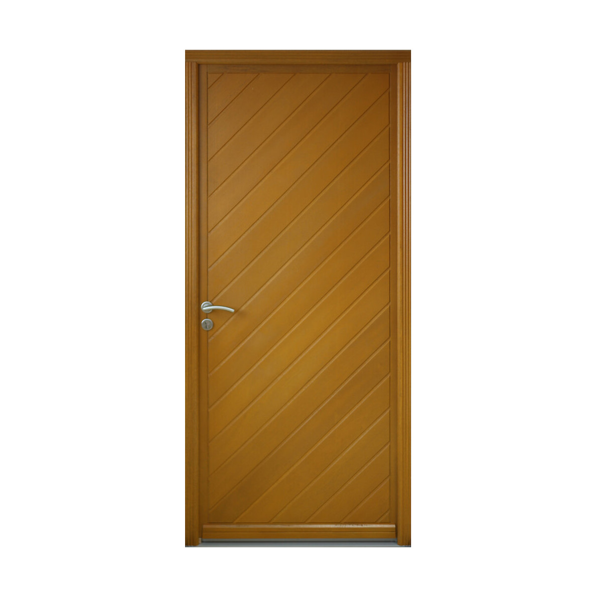 Porte d'entrée en bois exotique méranti, crémone 6 points, seuil aluminium anodisé dormant 46mm.