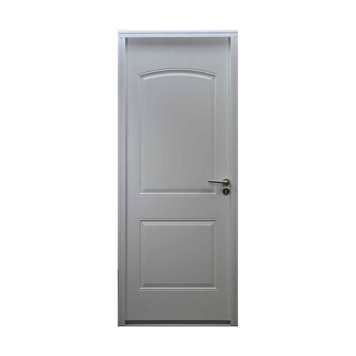 Portes d'épaisseur 46mm ouvrant et dormant, Porte acier 75/100 anticorrosion G40. Crémone à relevage de marque VACHETTE comprenant 6 points de fermeture, seuil aluminium anodisé dormant 46mm.