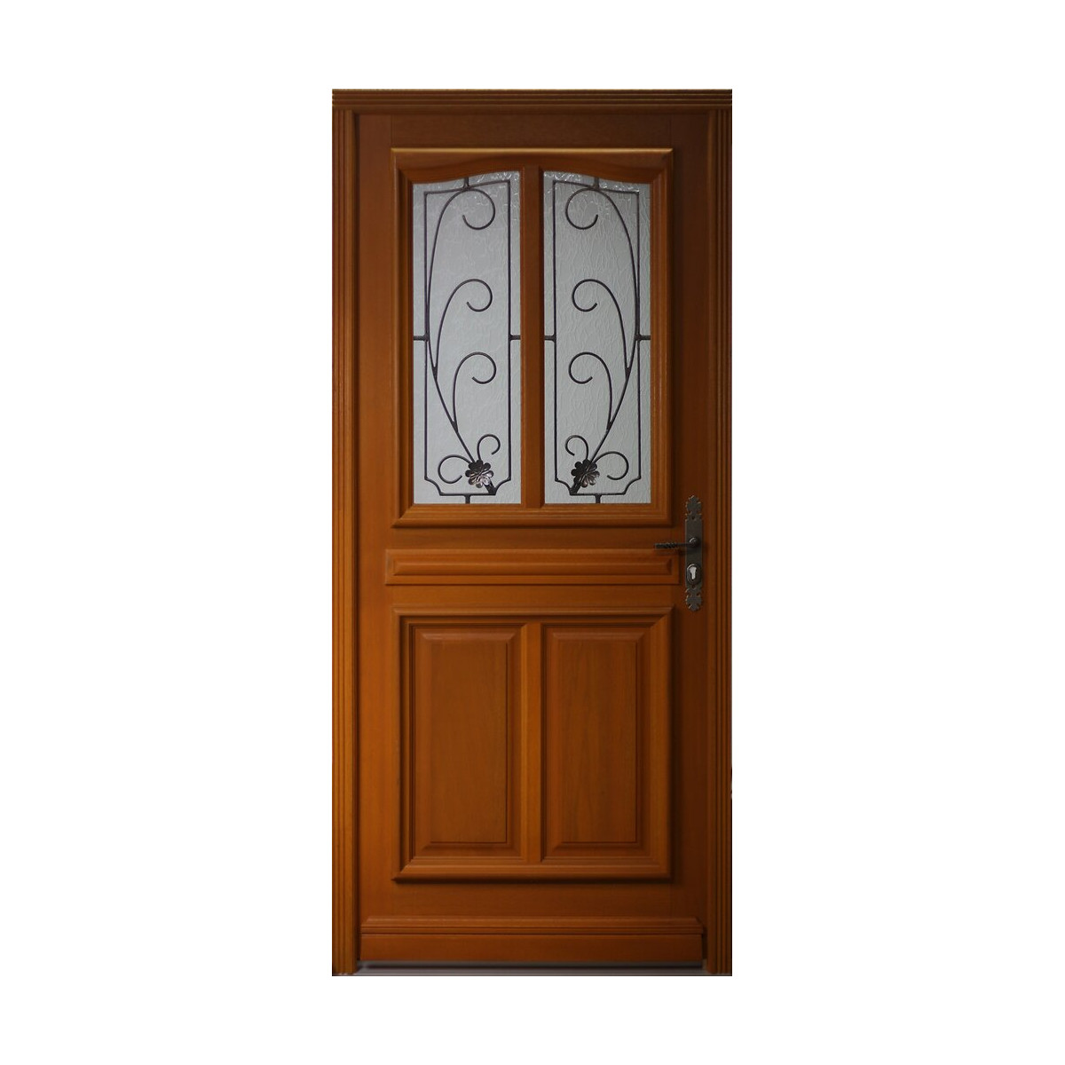 Porte d'entrée en bois exotique méranti, crémone 6 points, seuil aluminium anodisé dormant 46mm.