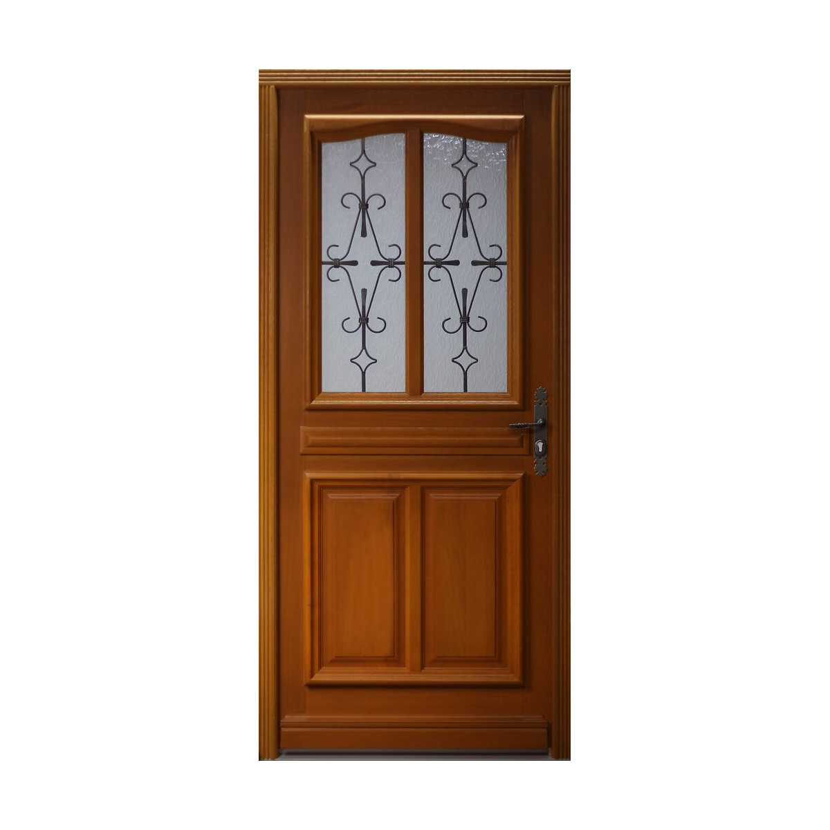 Porte d'entrée en bois exotique méranti, crémone 6 points, seuil aluminium anodisé dormant 46mm.