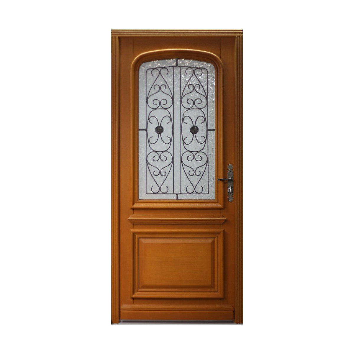 Porte d'entrée en bois exotique méranti, crémone 6 points, seuil aluminium anodisé dormant 46mm.