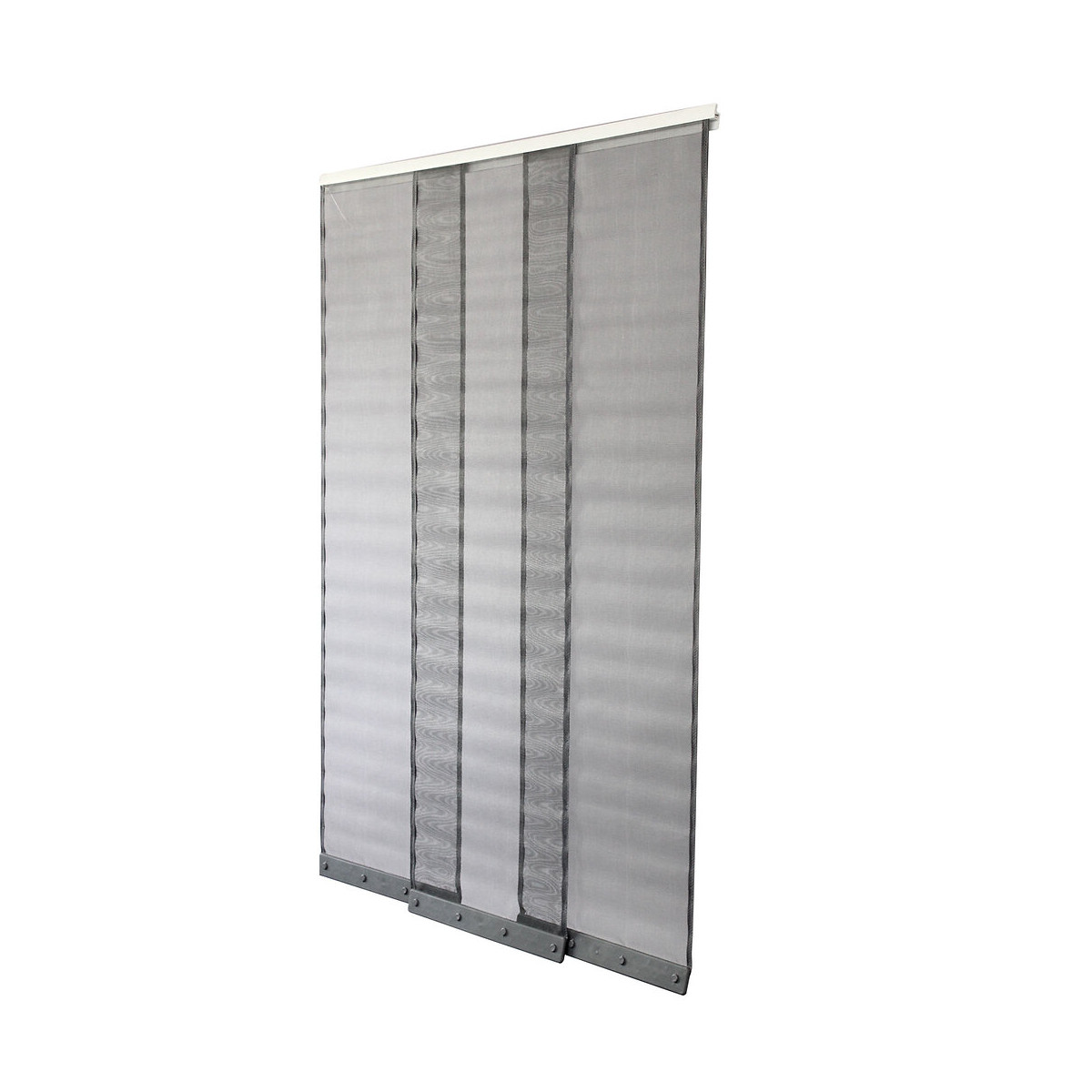 Moustiquaire rideau pour porte se composant de 3 bandes en fibre de verre, lestées à 80gr permettant le repositionnement automatique du rideau lors du passage. Coloris gris.