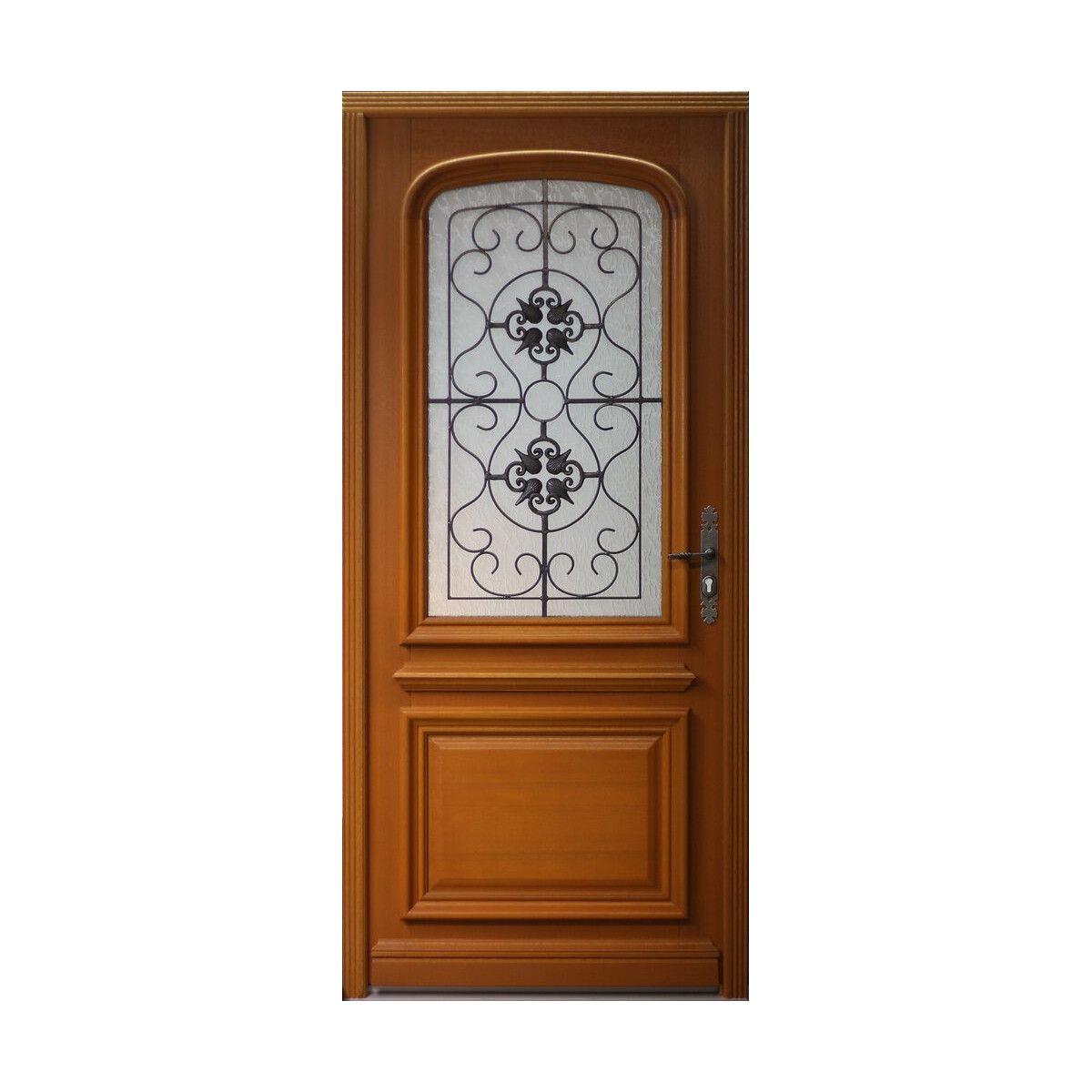 Porte d'entrée en bois exotique méranti, crémone 6 points, seuil aluminium anodisé dormant 46mm.
